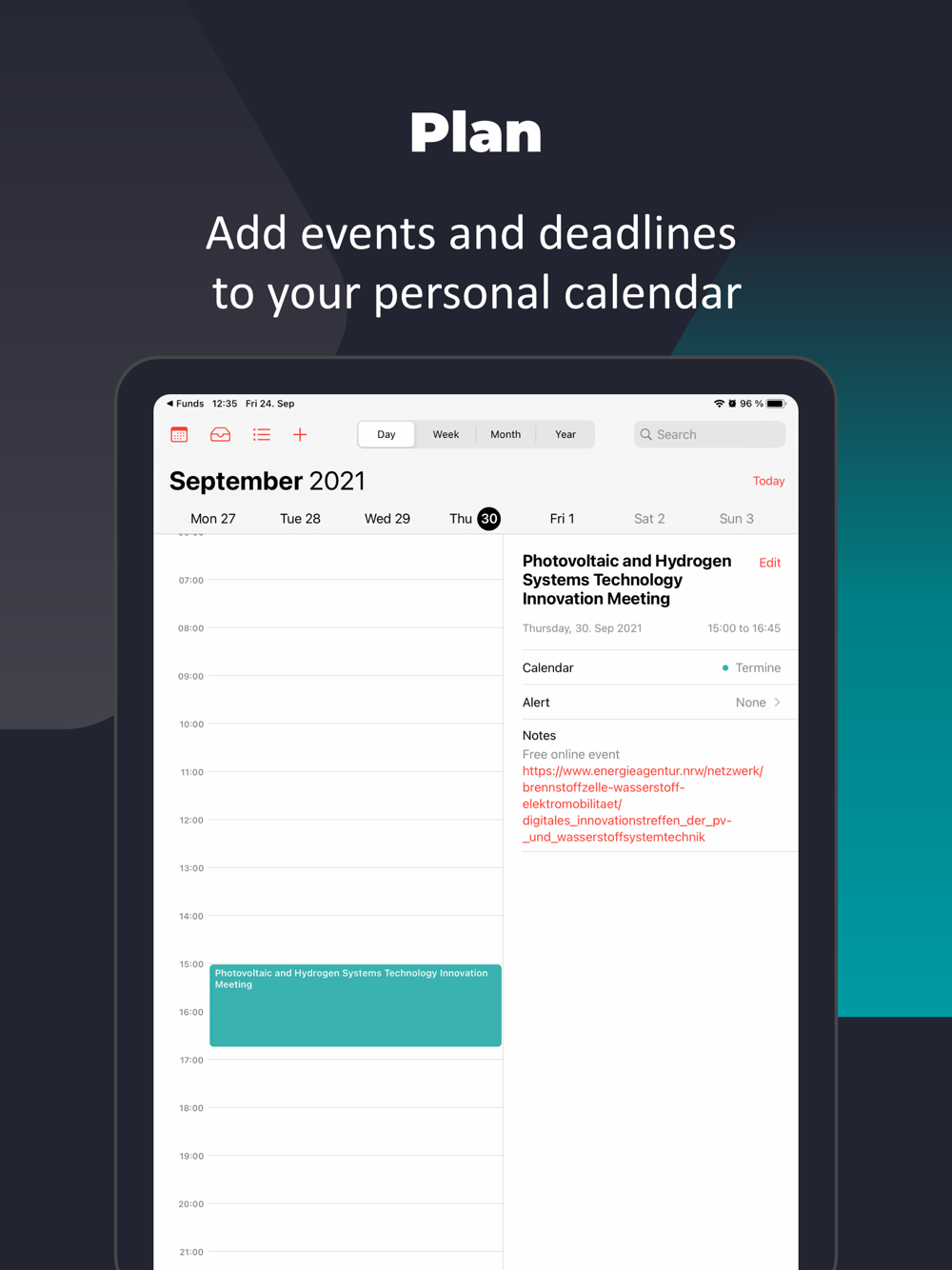 By activating the reminder function in the settings of the app, you will be informed in time of current calls and events via push notifications directly to your mobile phone.