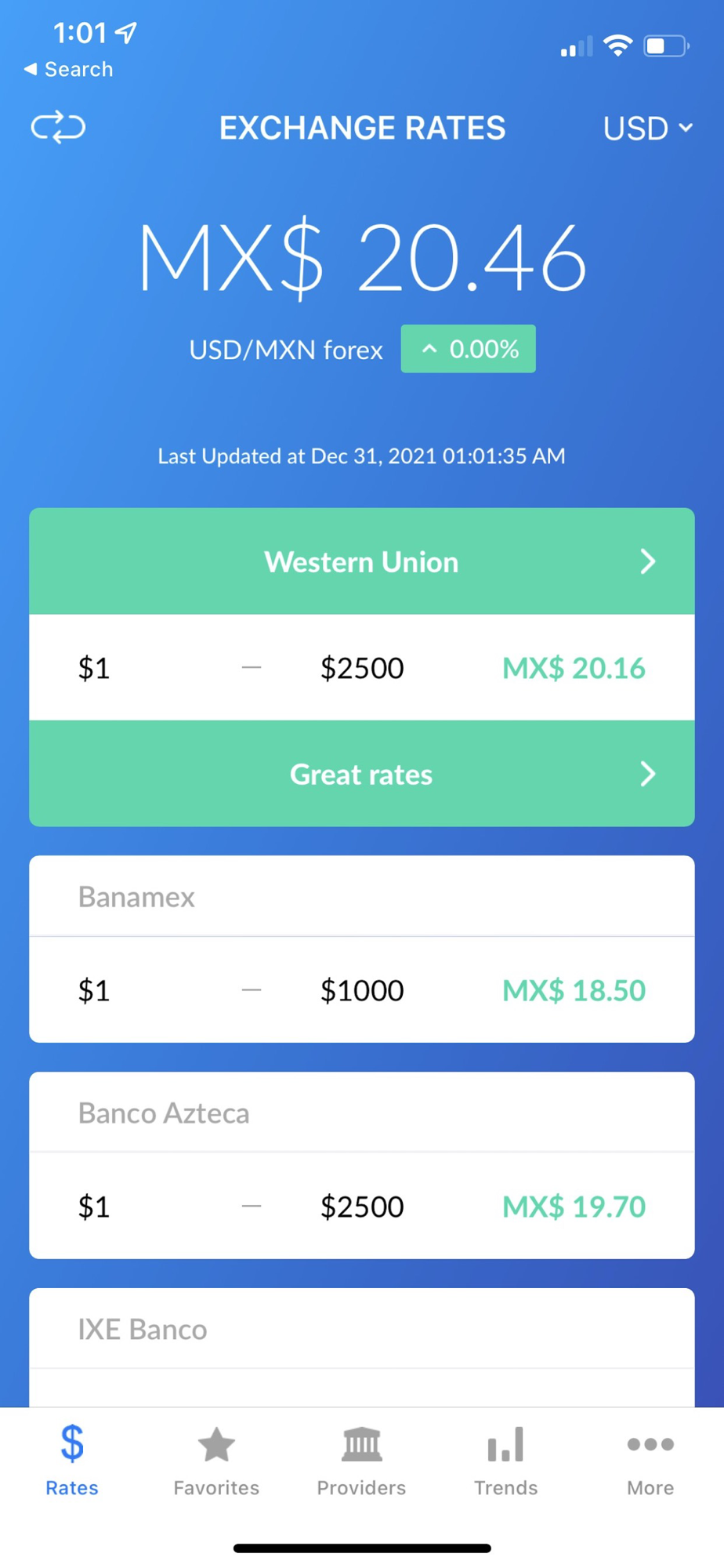 1. Easily track USD to MXN exchange rates of top financial institutions