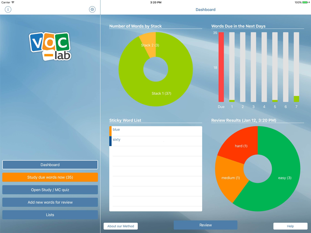 Voclab will gradually increase the difficulty of words to ensure that you gain first a solid foundation of basic words before learning more complex ones. This enables you to quickly gain a good understanding of the language.