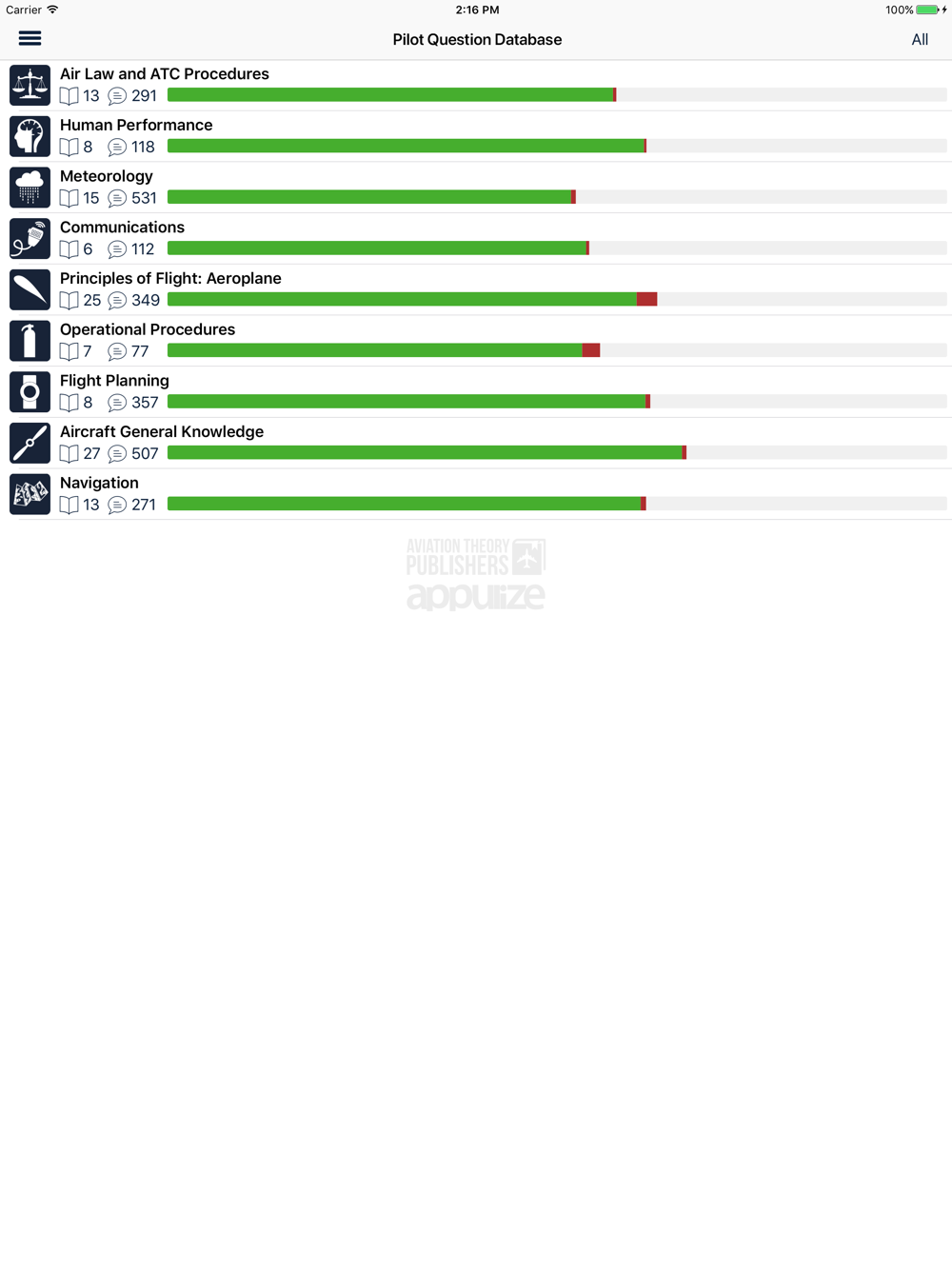 The PPL-App contains questions for each and every part of these published goals, ensuring wide and deep coverage of the necessary knowledge across all EU-states. The question database is published in the English language, but can be used by PPL and LAPL students from any EU state to prepare for their national exams.