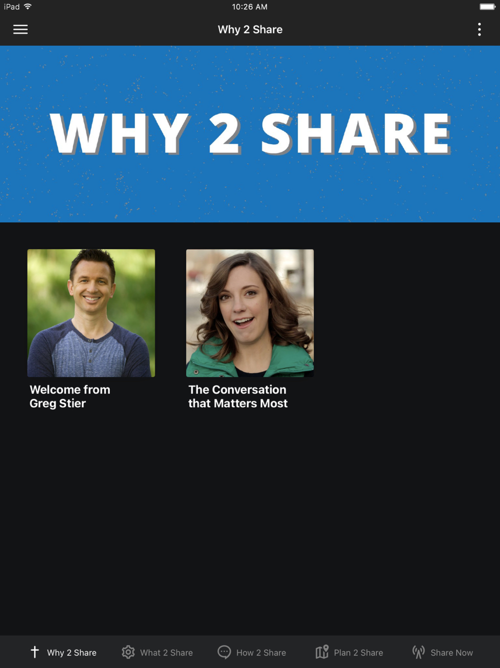 The Dare 2 Share app was developed with the Subsplash App Platform.