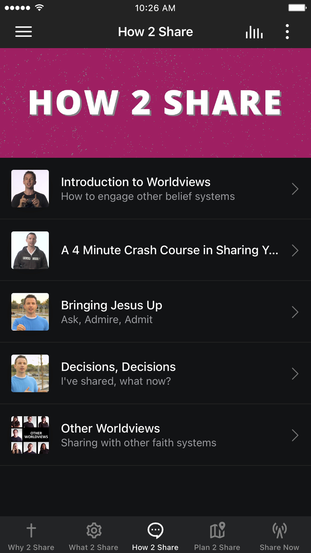 Get the training and tools that will help you share Jesus’ message of grace with your friends in your own unique, compelling way. After you’ve explored the content, pass it along! Share the conversation starters with your friends to begin gospel conversations, and get your Christian friends trained to share their faith through the app.