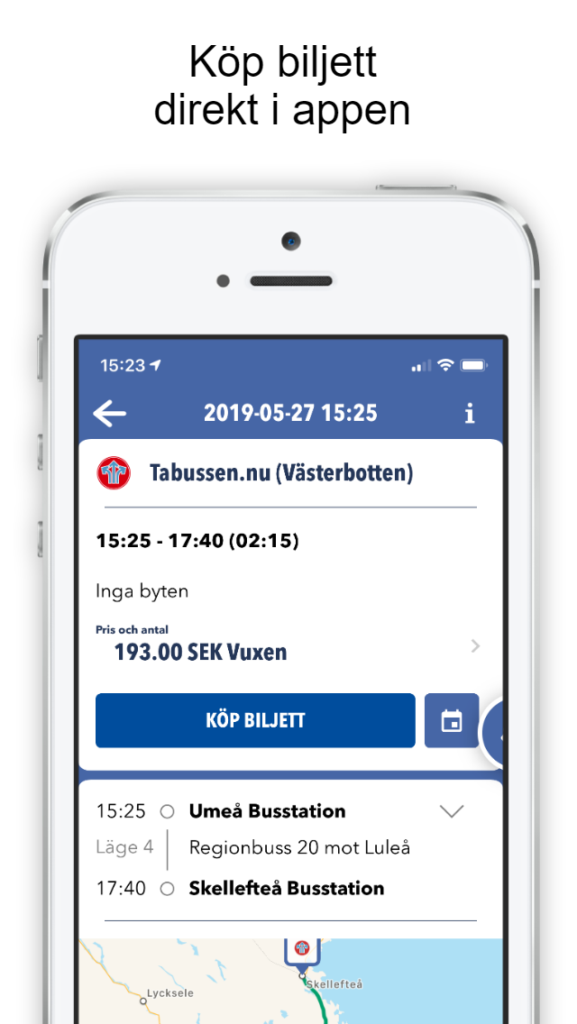 I appen kan du köpa mobilbiljett för korta och långa resor i Västerbotten. Säker betalning görs med swish, bankkort eller faktura.