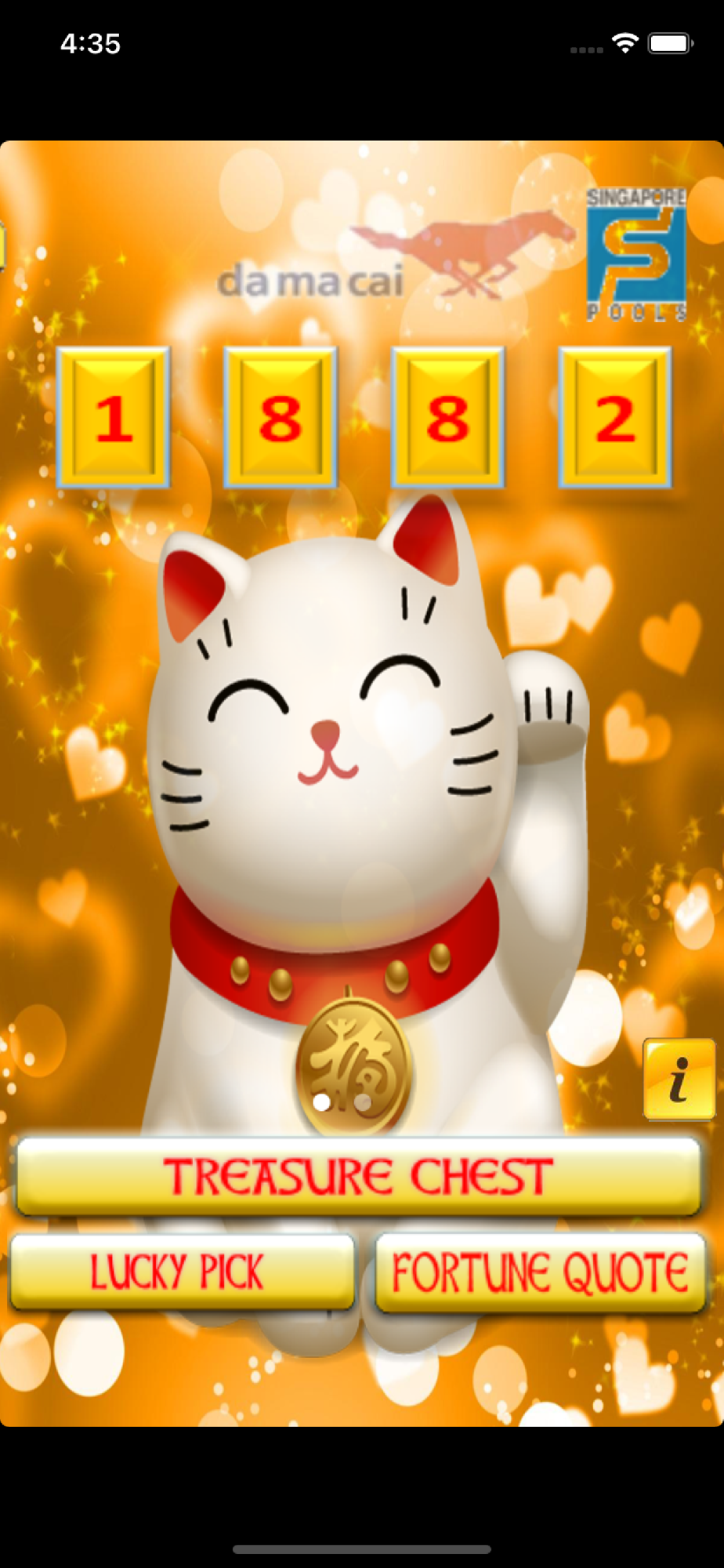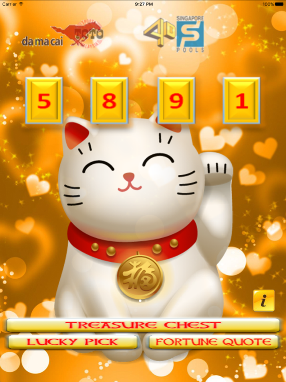 Everyday we are surrounded by happenings, big events to small occasions. There are lucky numbers to be uncovered in all of them! The 4D LUCK treasure chest is equivalent to a special little clandestine chinese book called “Chifa” which correlates numbers to certain objects and actions. You can translate your dreams, incidents, encounters and inspirations into lucky 4D numbers. This is also 4-digit lucky number generator for your favorite Lottery, designed to be fast and easy to use.You can also use the 4D LUCK without internet connection. The 4D LUCK application is also the simplest and prettiest program displaying random fortunes. It has a database of over 1000 fortune quotes and now you can open as many as you want!Get a lucky fortune and see what your destiny bodes you or just read a new thought, start your day with a smile.