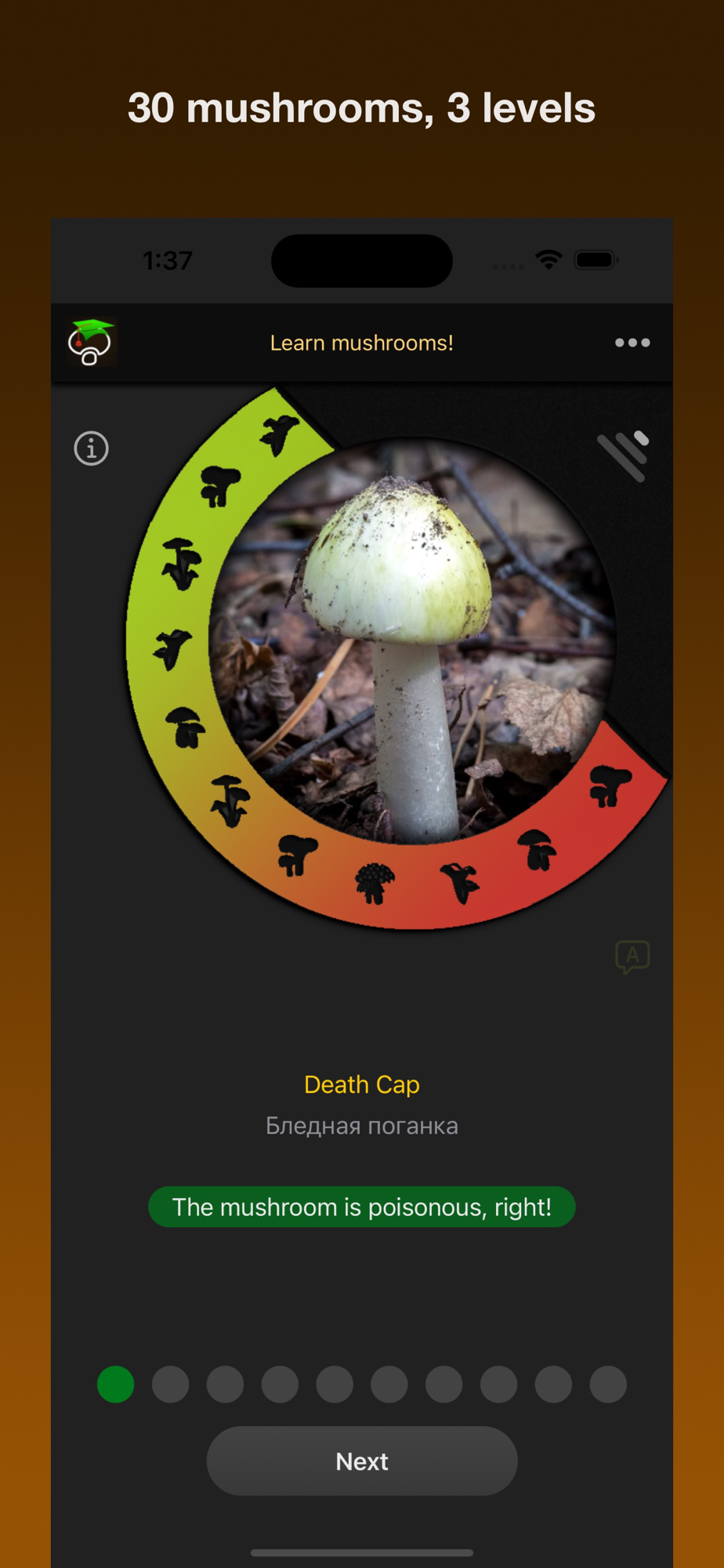 In total, there are 30 of the most famous wild mushrooms in the app.