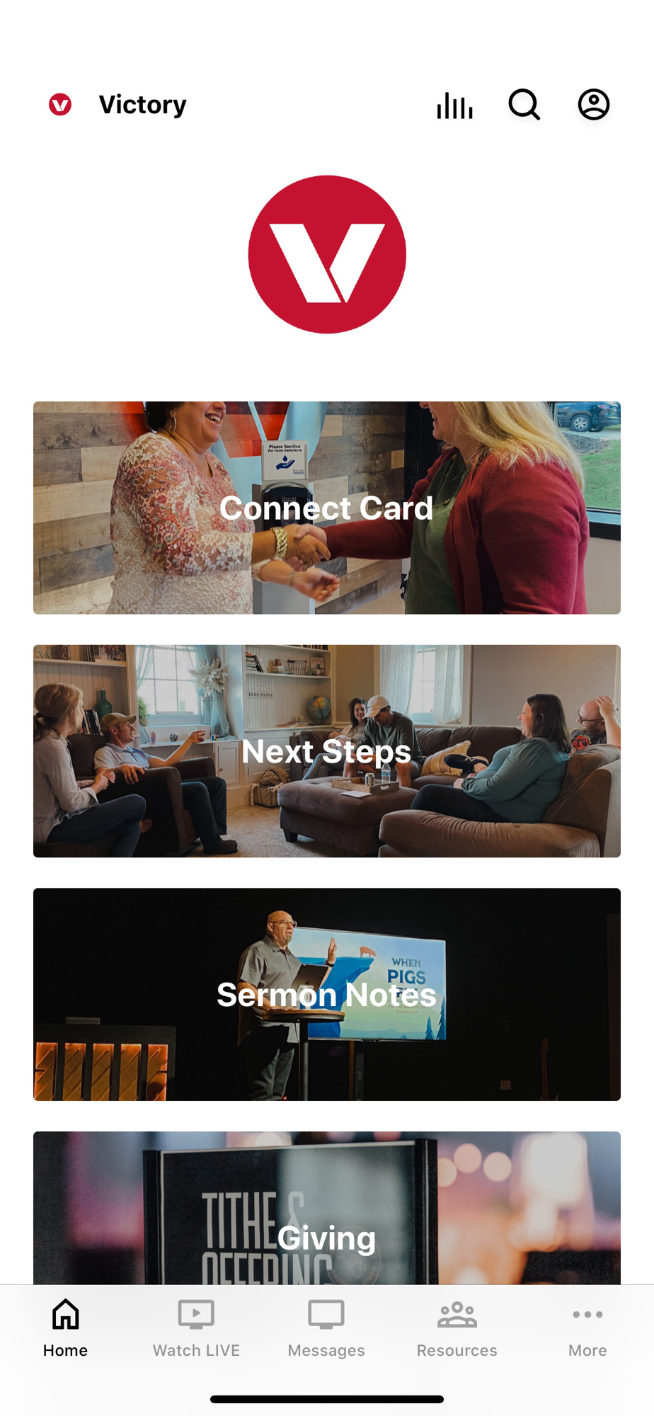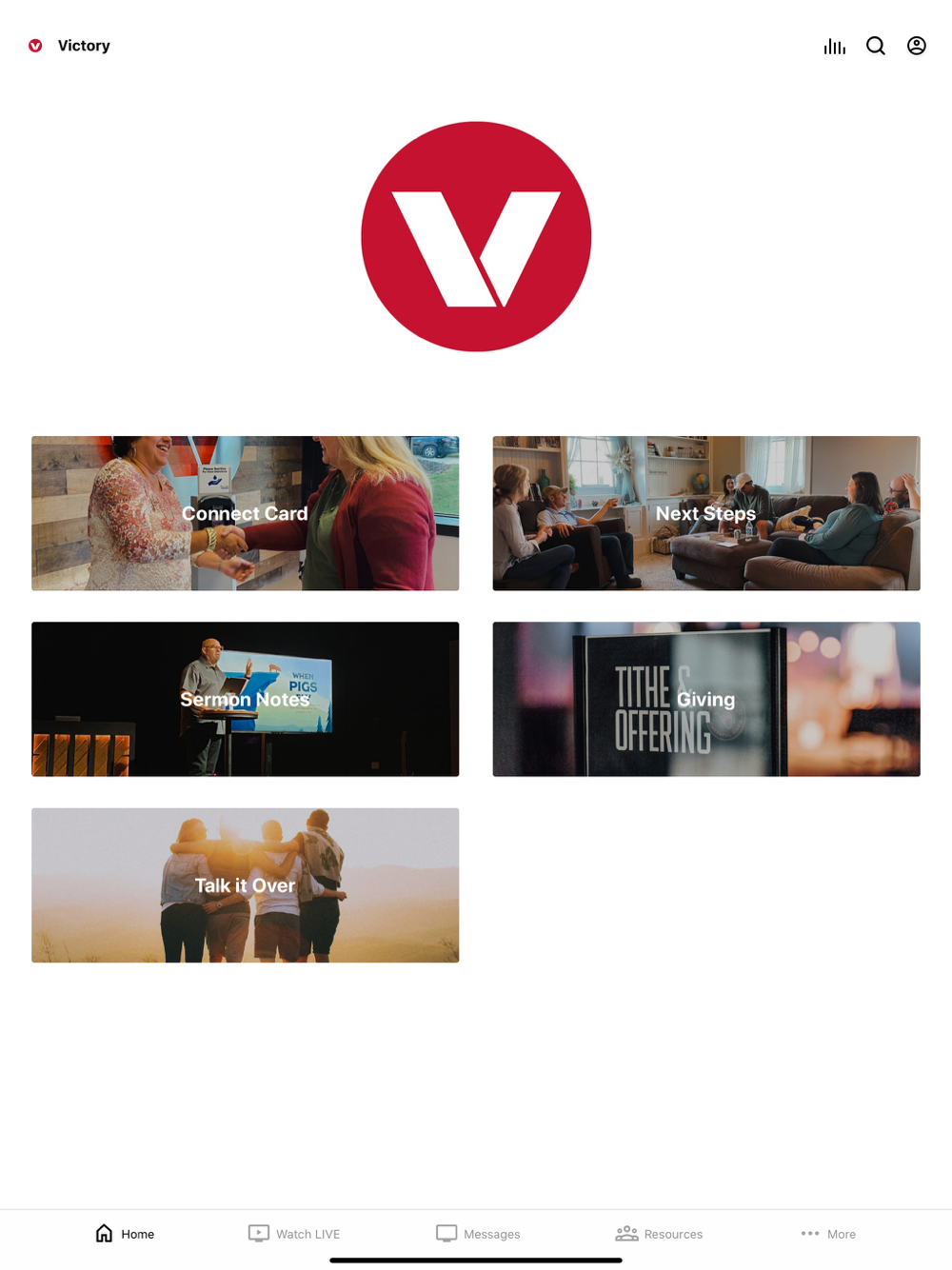 At Victory Church, it is our mission to help people take their NEXT STEP in their journey of faith with the Lord Jesus Christ. Through our app you'll be able to connect and receive up to date resources including our Connect Card, Weekly Sermon Notes and so much more...