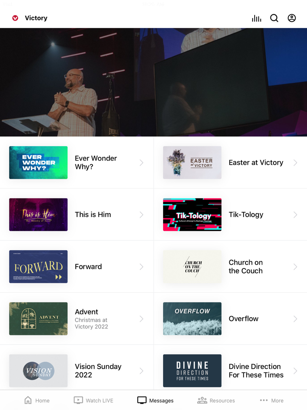 The Victory Church PA app was developed with the Subsplash App Platform.