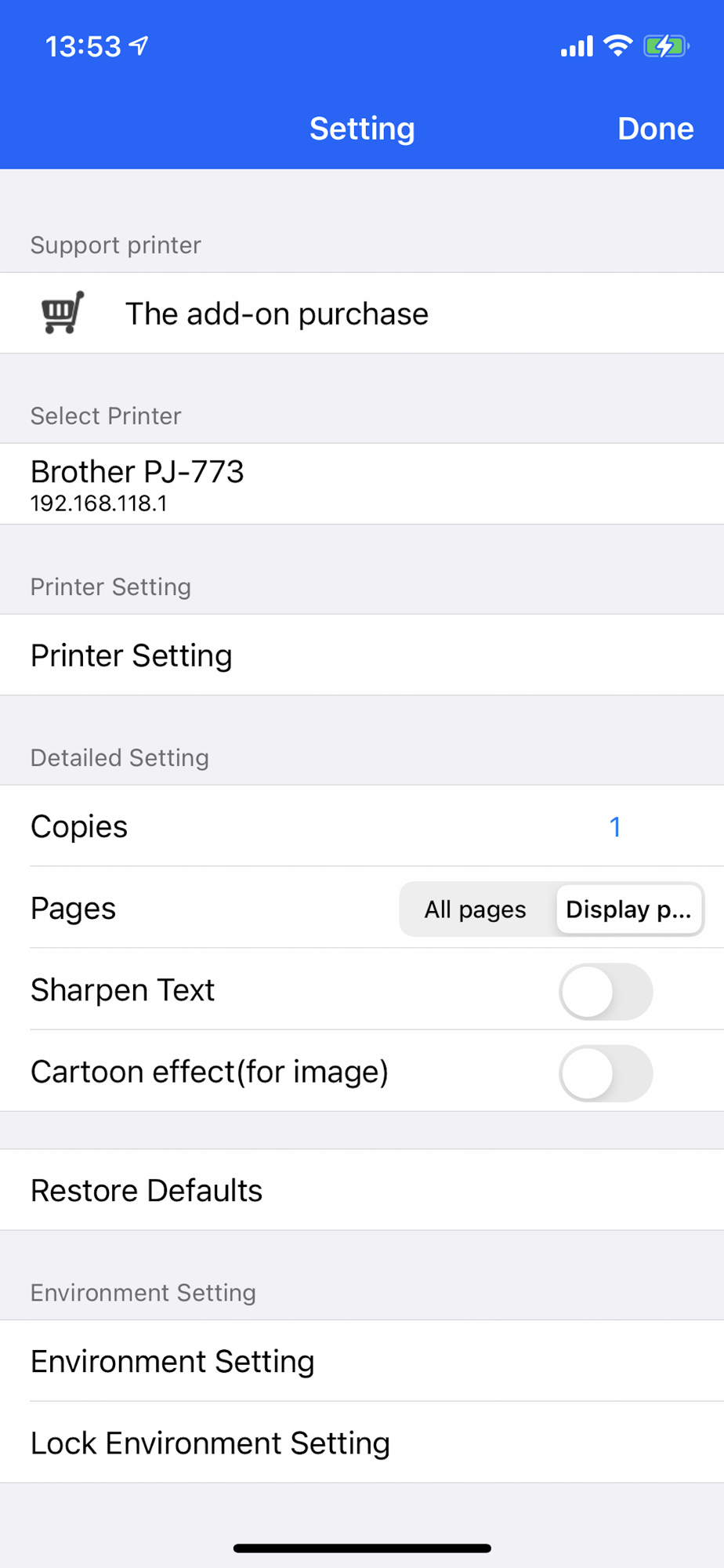 (During the Open-In and simple print,communication with the printer and the iOS device is disconnected.)