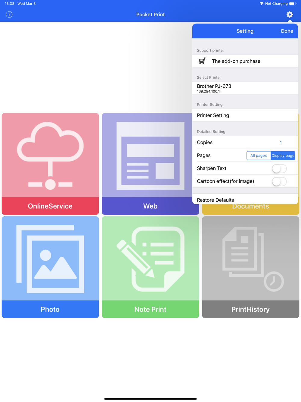 the Pocket Print simple print from other applications.