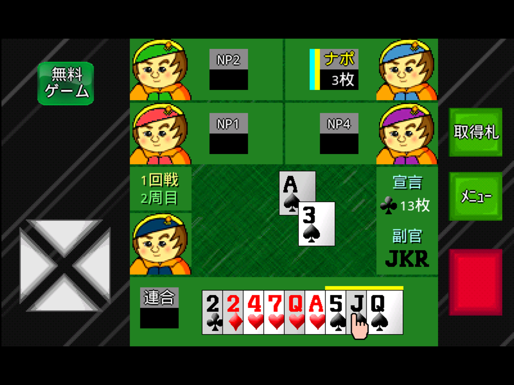 ナポレオンはローカルルールの多いゲームですが、かなりの数のローカルルールには対応しています。