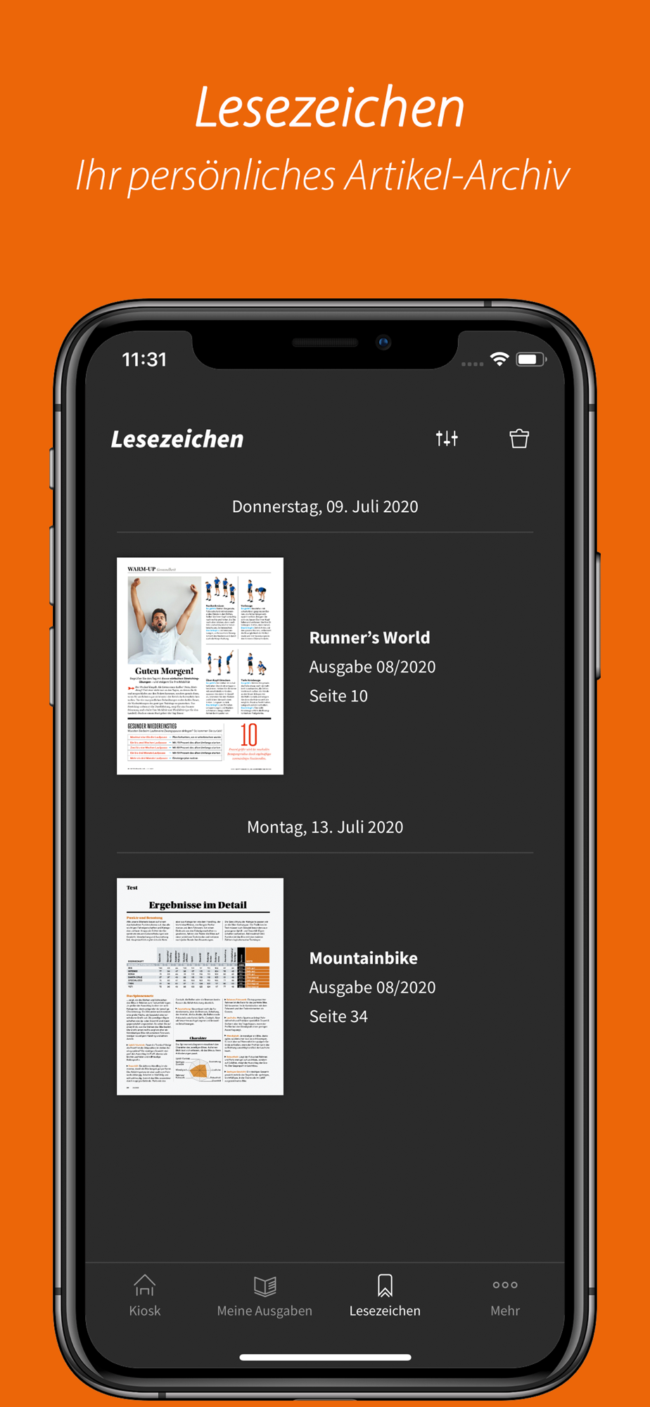 - Alle digitalen Ausgaben ab 2019 von MOUNTAINBIKE, ROADBIKE, outdoor, klettern, RUNNER’S WORLD, CAVALLO, Elektrobike, karl und ADAC Reisemagazin inklusive aller Sonderhefte