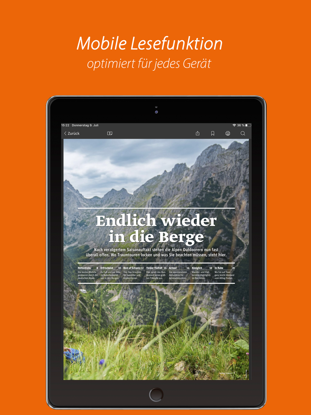 - Einzelausgaben und iTunes-Abos bequem innerhalb der App beziehen