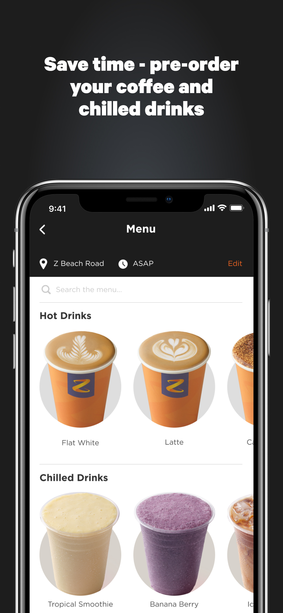 • Pre-order barista-made coffee, hot and chilled drinks from our Z Espress range