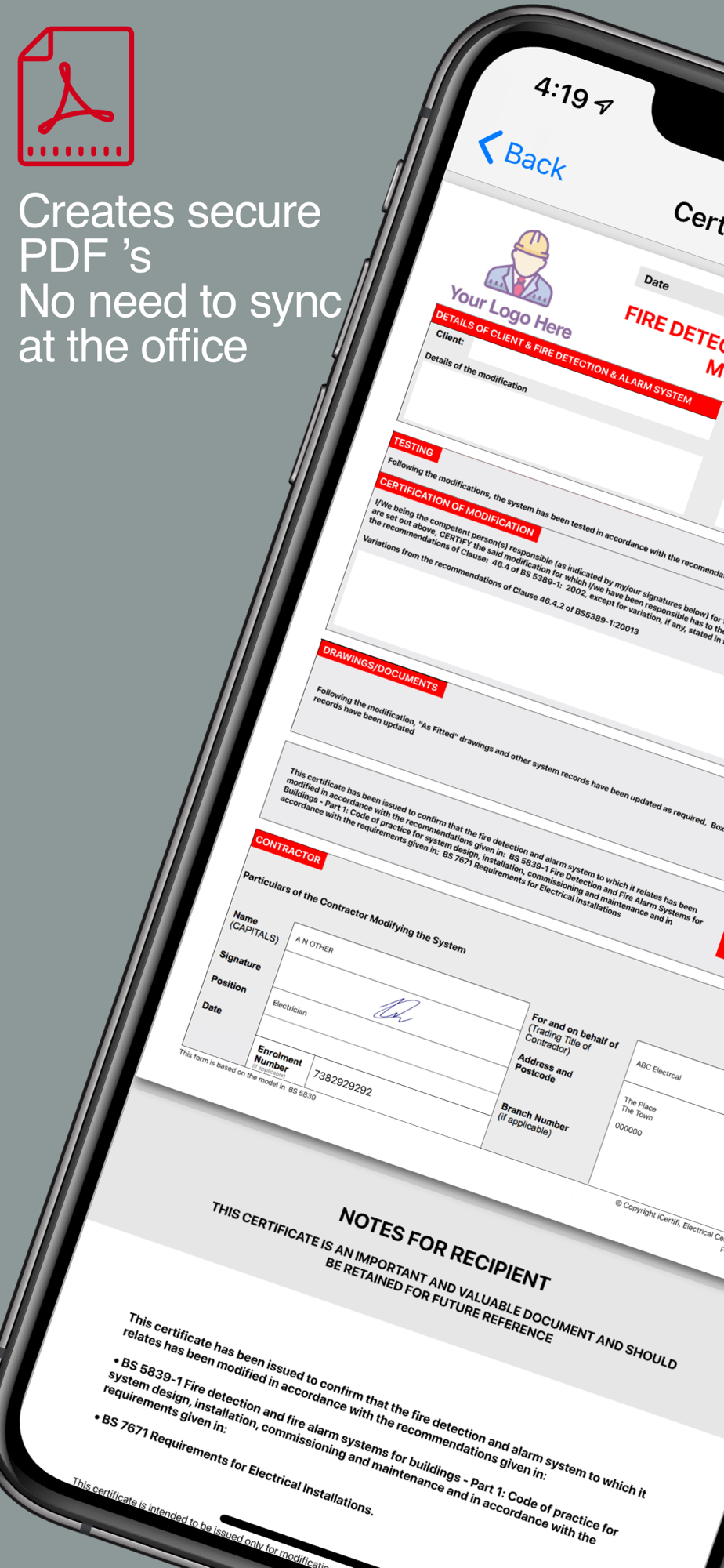 A ground breaking electrical app that is changing how electrical contractors & Fire Alarm engineers work. iCertifi Fire Edition is unique as it is totally self sufficient with NO restrictions on certificate numbers & NO requirements for PC based software.