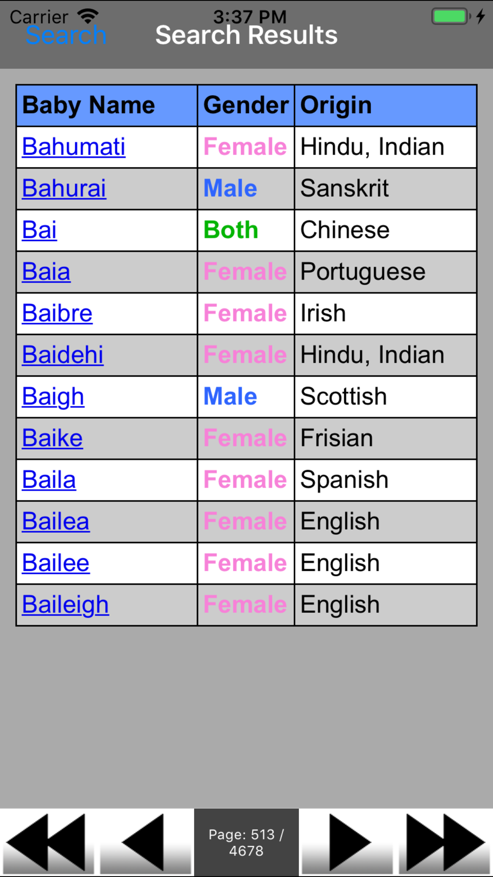 Simple to use baby naming application! With an easy to use interface, browse over 56,000+ baby names from all over the world. See name's, gender, origin, pronunciation and meaning. Search by partial name, navigate names indexed by alphabet or origin. A convenient and great way to search for your newborns name.