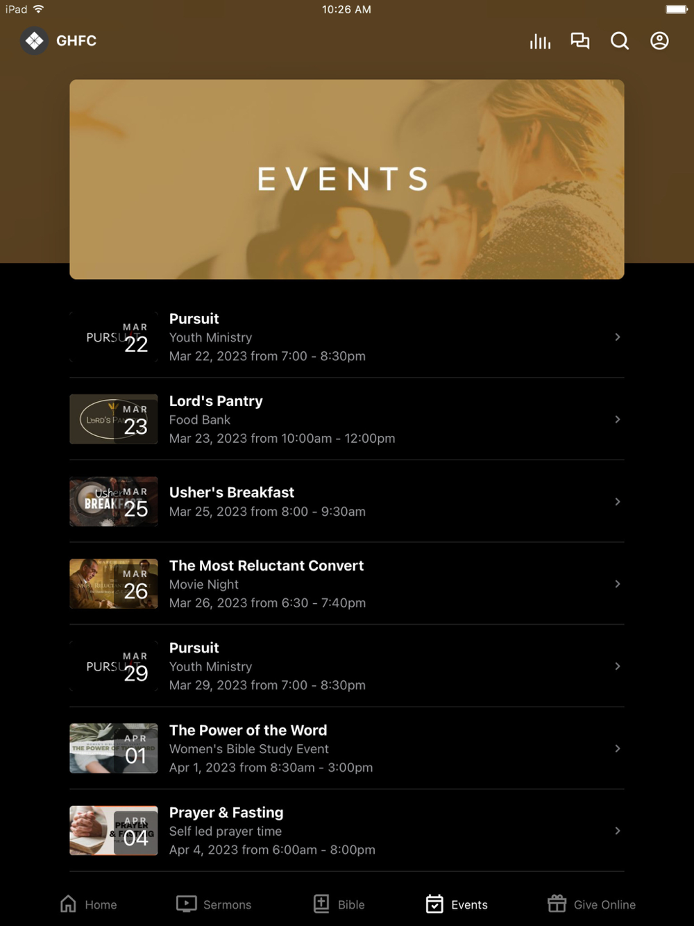 Our Event section allows you to keep up with the latest happenings in our church. Plus, you can stay connected to the community through our Connect section.