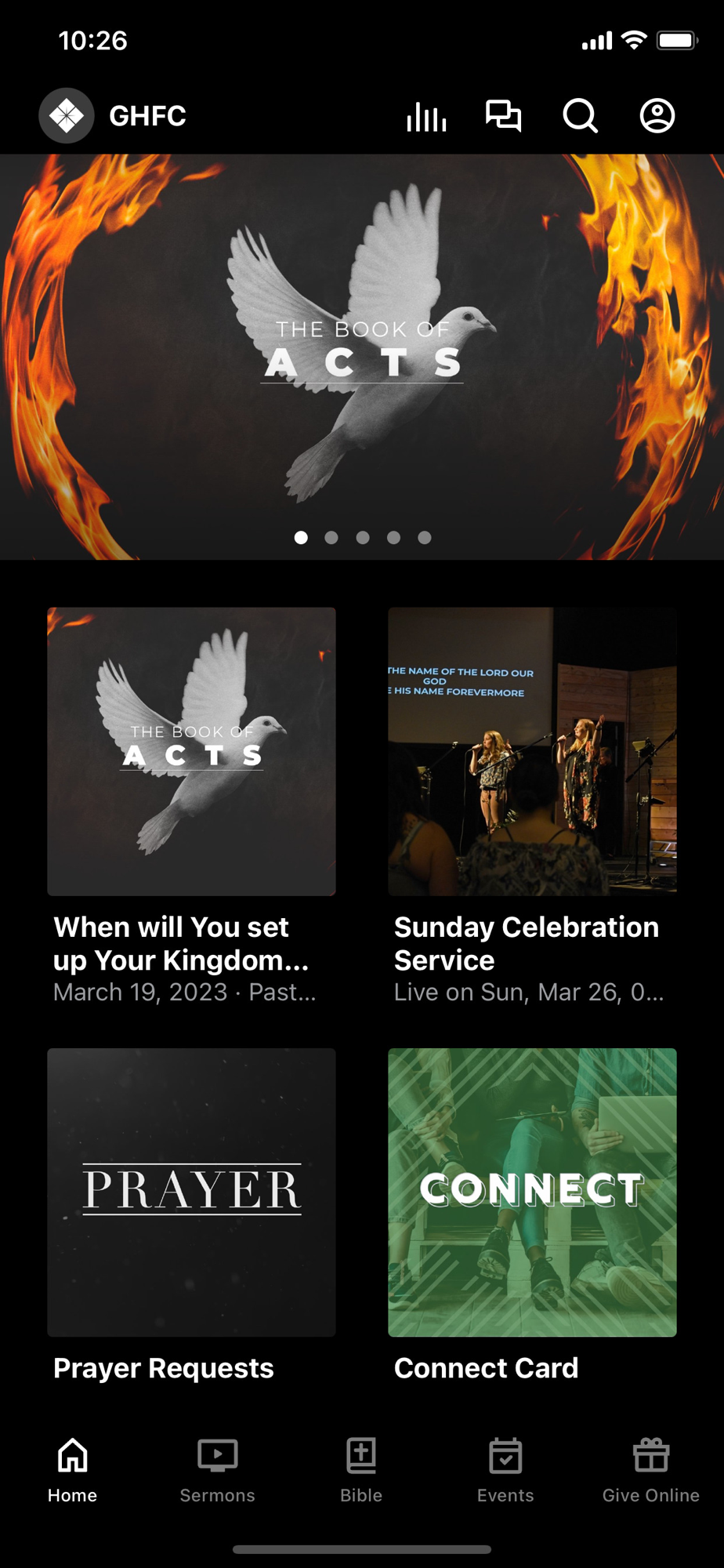 The Grays Harbor Foursquare Church app was developed with the Subsplash App Platform.