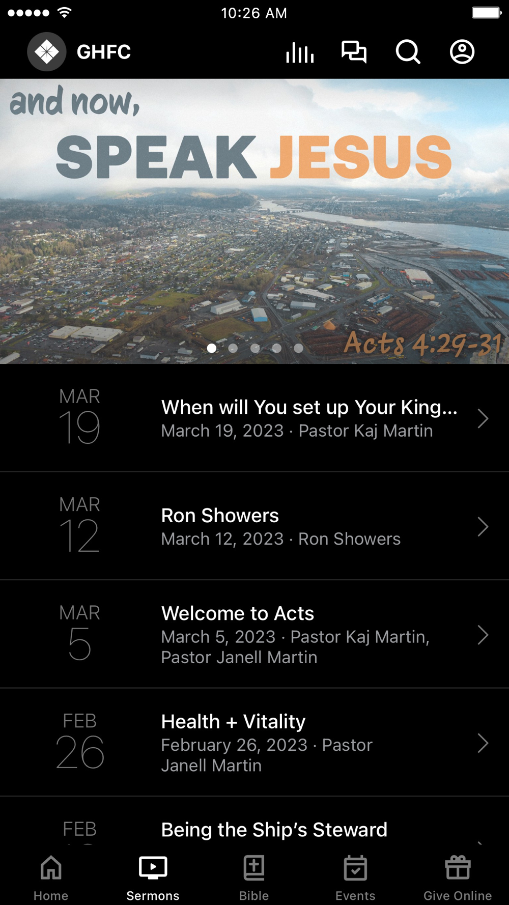 Our church family application connects you to what’s going on weekly at Grays Harbor Foursquare Church. Catch up on all of Pastor Kaj & Janell Martin’s recent messages by watching the video or listening to the audio, and easily share links via Twitter or Email. You also have access to our live streaming so you can watch the entire service LIVE on the go.