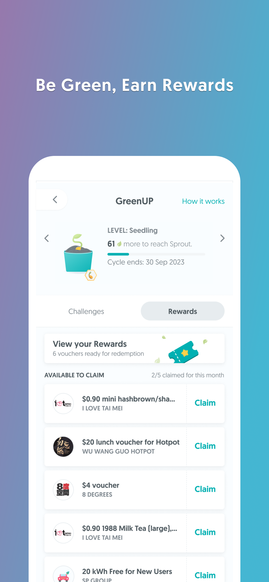 Together, let’s make sustainability our way of life. Singapore’s greenest app - starting with you!