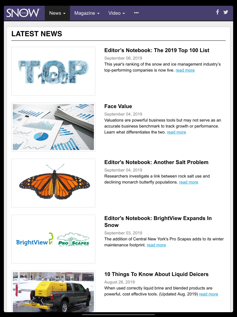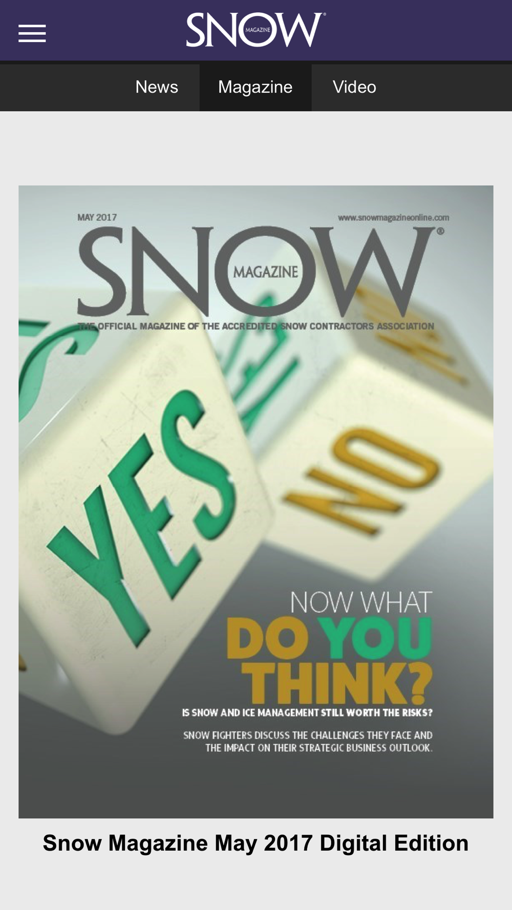 Snow Magazine is the leading business management publication serving the professional snow and ice management industry. Snow Magazine offers comprehensive coverage of industry issues and in-depth analysis of best-management practices that encourage and inspire continued growth and professionalism among snow and ice managers. Snow Magazine also serves as the official publication of the Accredited Snow Contractors Association (ASCA), a group focused on the advancement of professionalism through industry standards, education and certification in the snow and ice management industry.