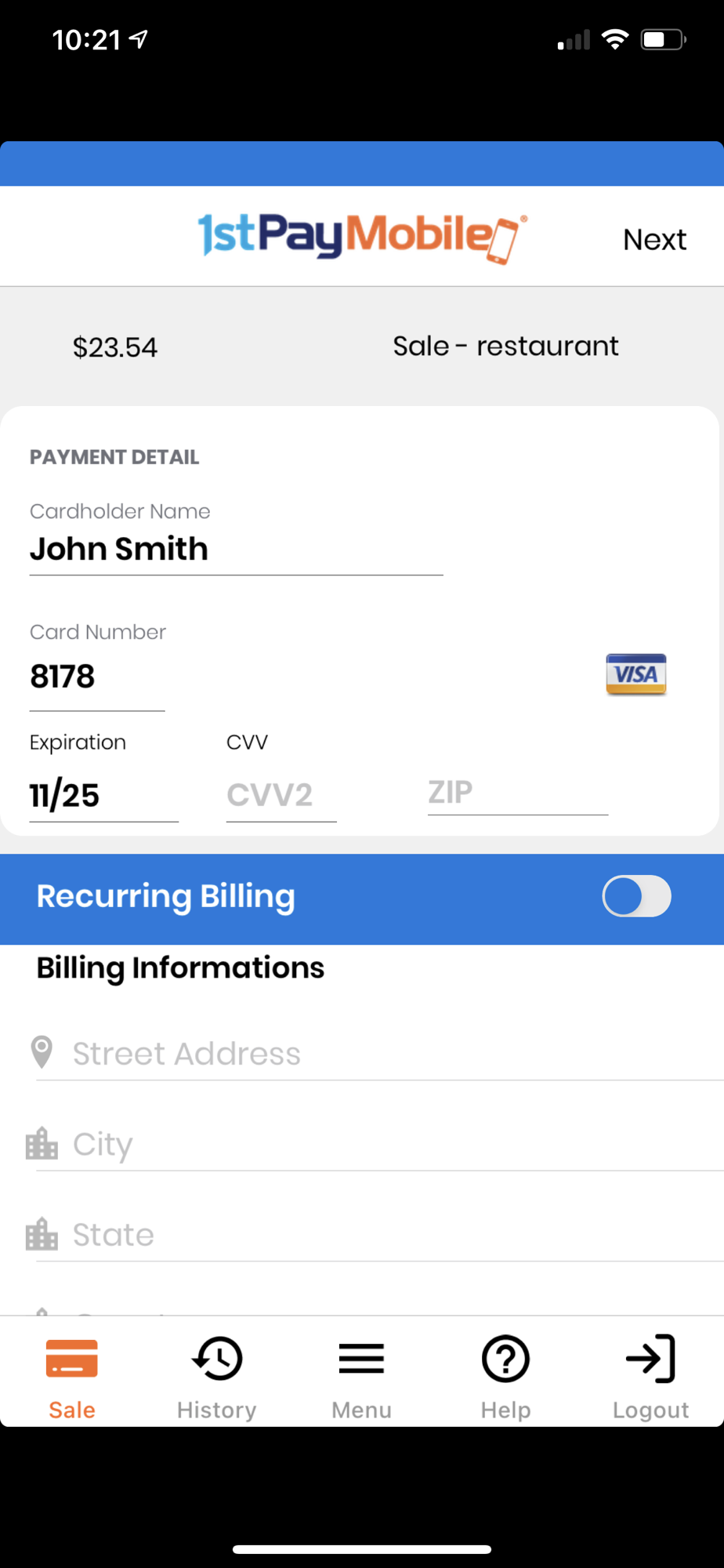 1stPayMobile allows you to swipe or key credit card payments with your iPhone, iPad or iPod Touch. It is a secure mobile payments solution for businesses and nonprofits that is configurable to meet unique business needs. 1stPayMobile is a cost effective way to accept credit cards from any location.