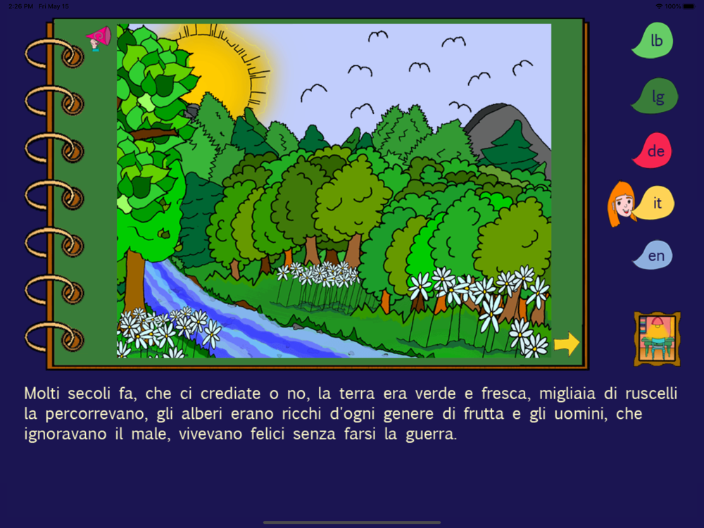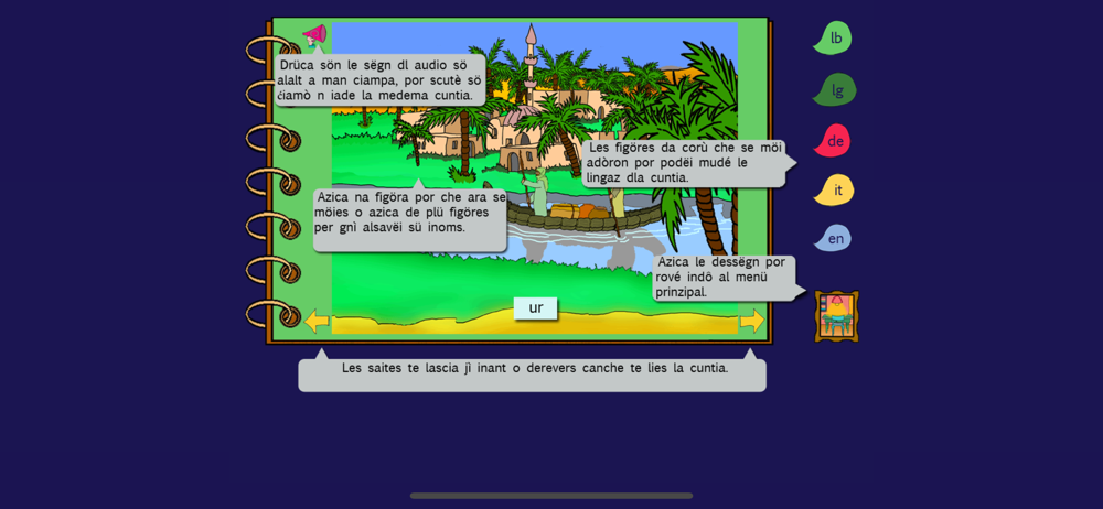 After the publication of the book with CD, the former Ladin Pedagogical Institute, now Innovation and Counselling, developed together with its partners this app, mainly thought for integrated multilingual teaching.