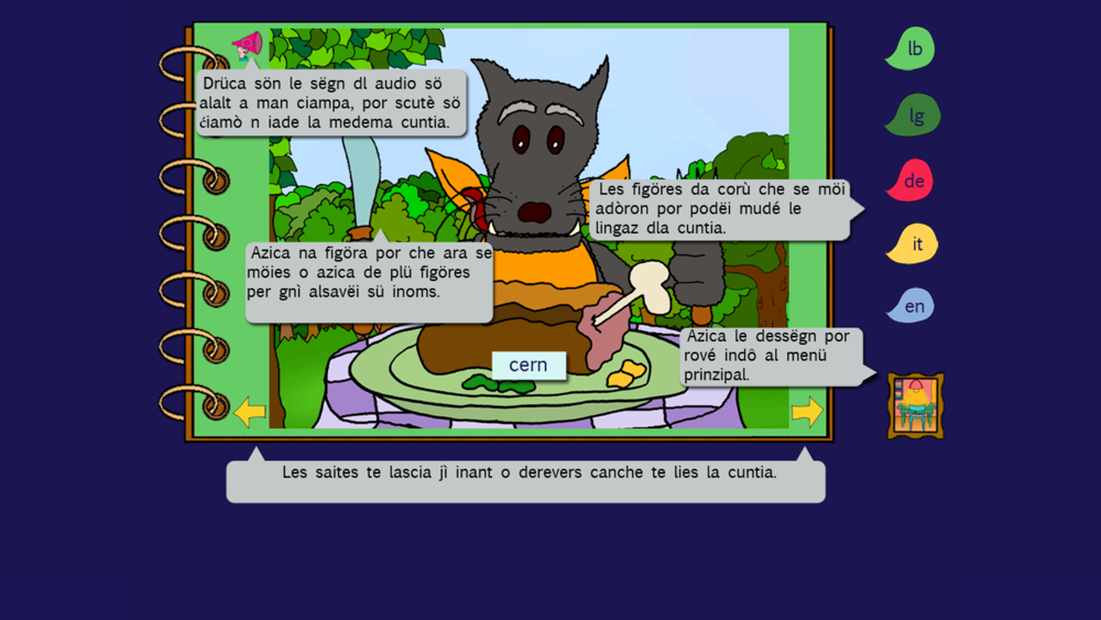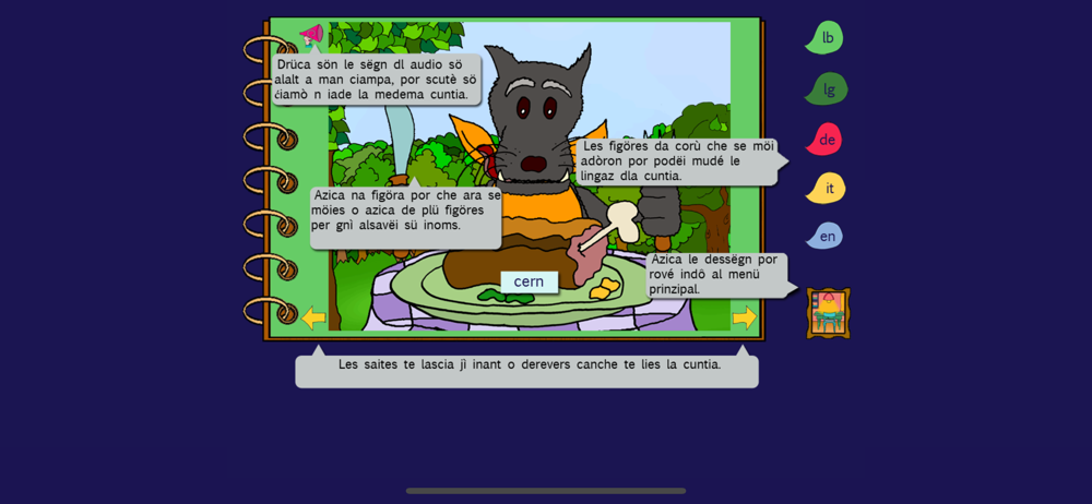 After the publication of the book with CD, the former Ladin Pedagogical Institute, now Innovation and Counselling, developed together with its partners this app, mainly thought for integrated multilingual teaching.