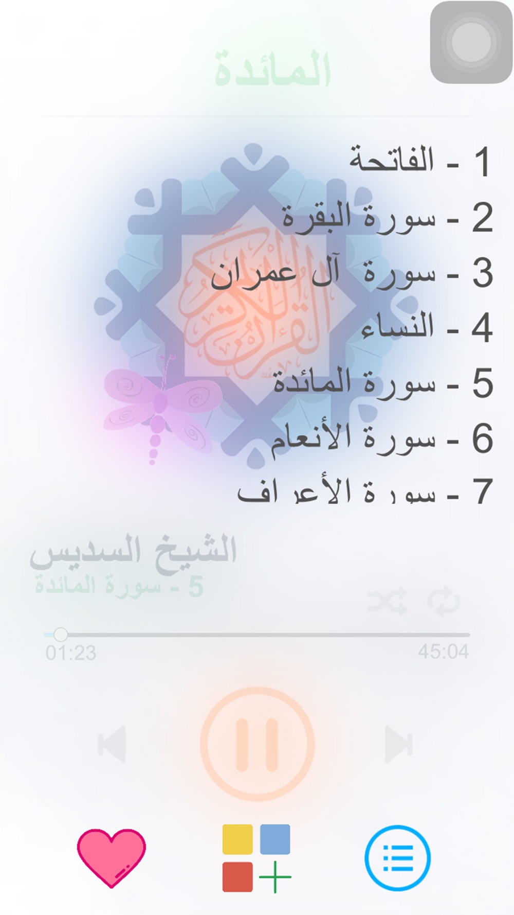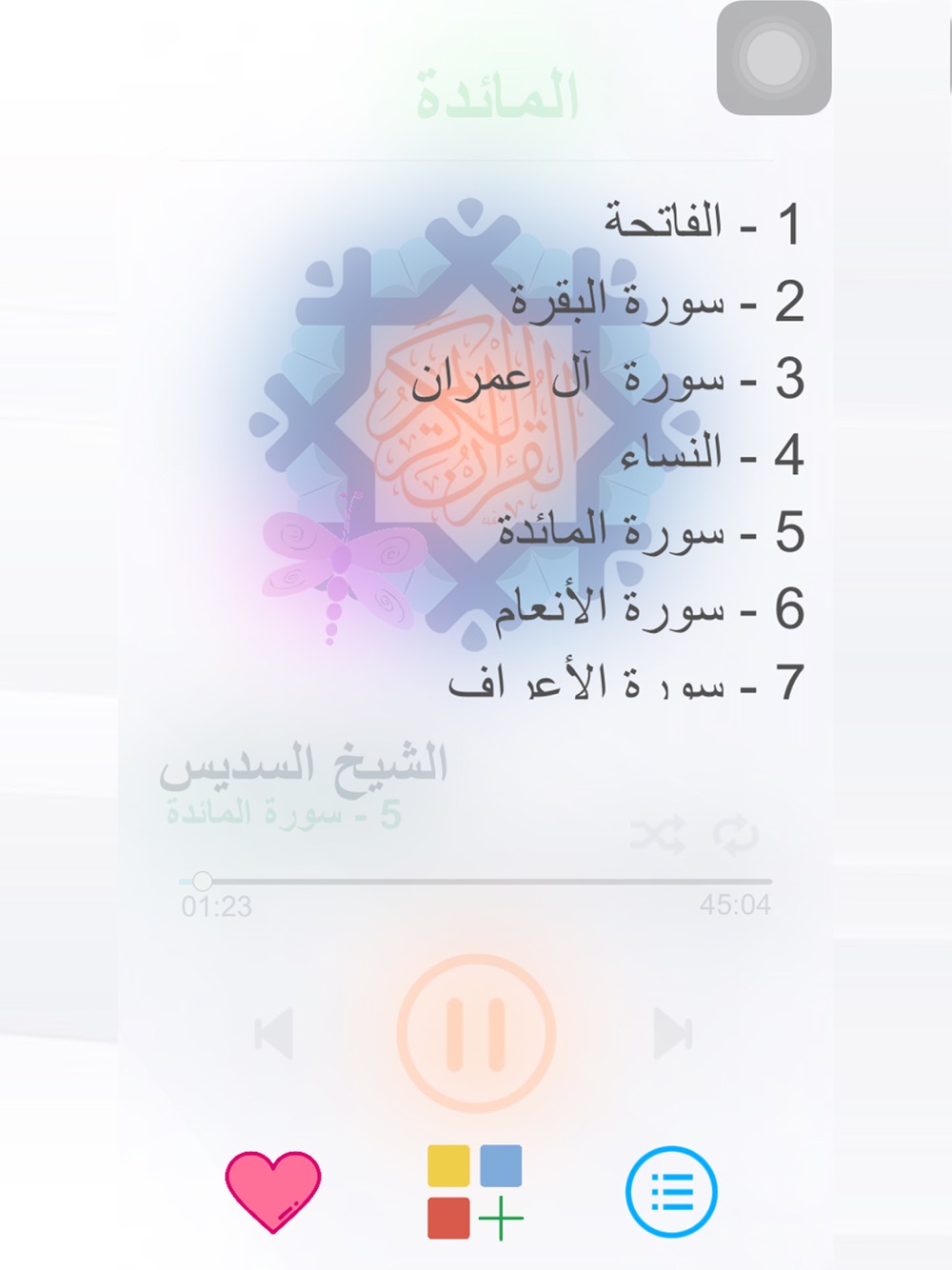 1 - a complete list of the Holy Qur'an , which you can choose from to listen to Surat you want