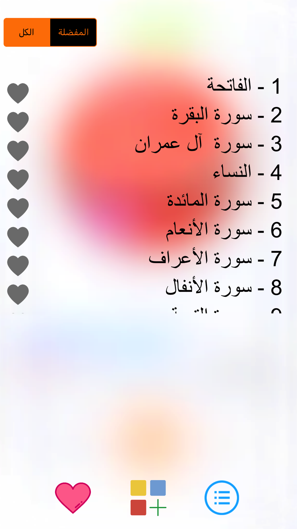 ١- قائمة كاملة لجميع السور للقرآن الكريم يمكنك الاختيار من خلالها للاستماع للسورة التي تريدها