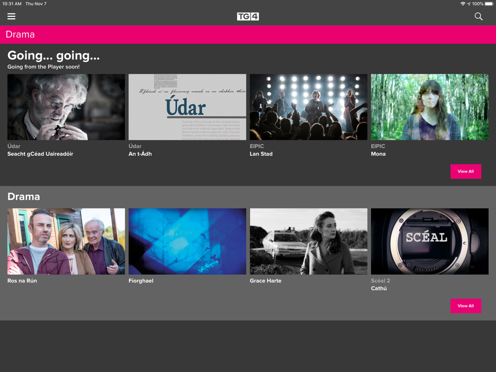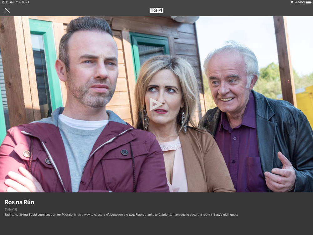 Is é TG4 an cainéal náisiúnta teilifíse poiblí Gaeilge, a chuireann ábhar clár Gaeilge ar fáil ar gach ardán in Éirinn agus ar fud an Domhain ar an seinnteoir.
