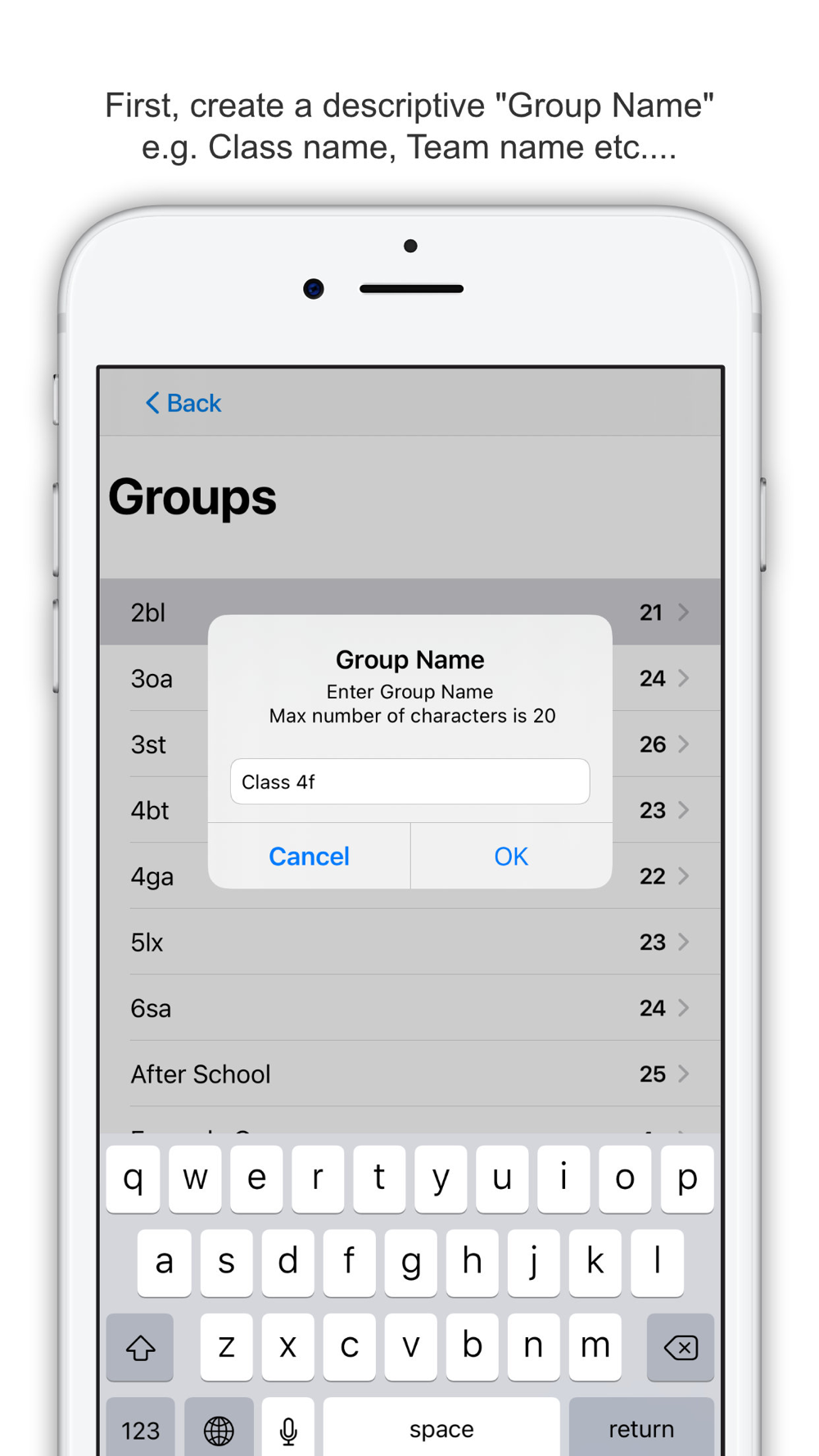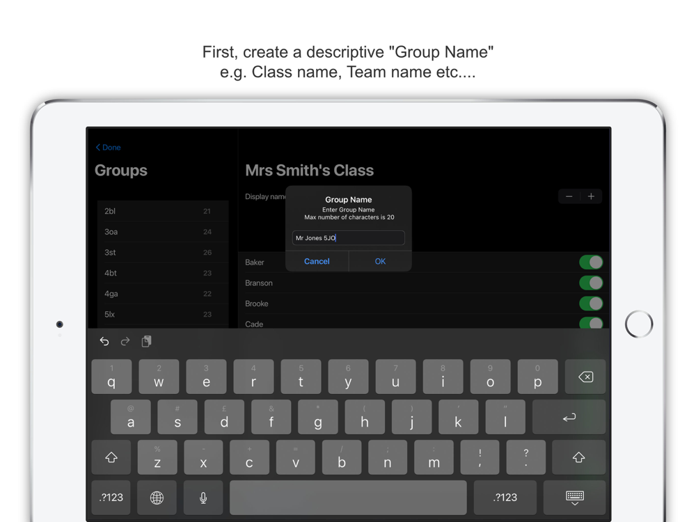 Simply create one or more groups (a Class or Group of Students). Add students to those groups. The App will then randomly select students from the highlighted group. All names will be displayed before a name is displayed for a second time.