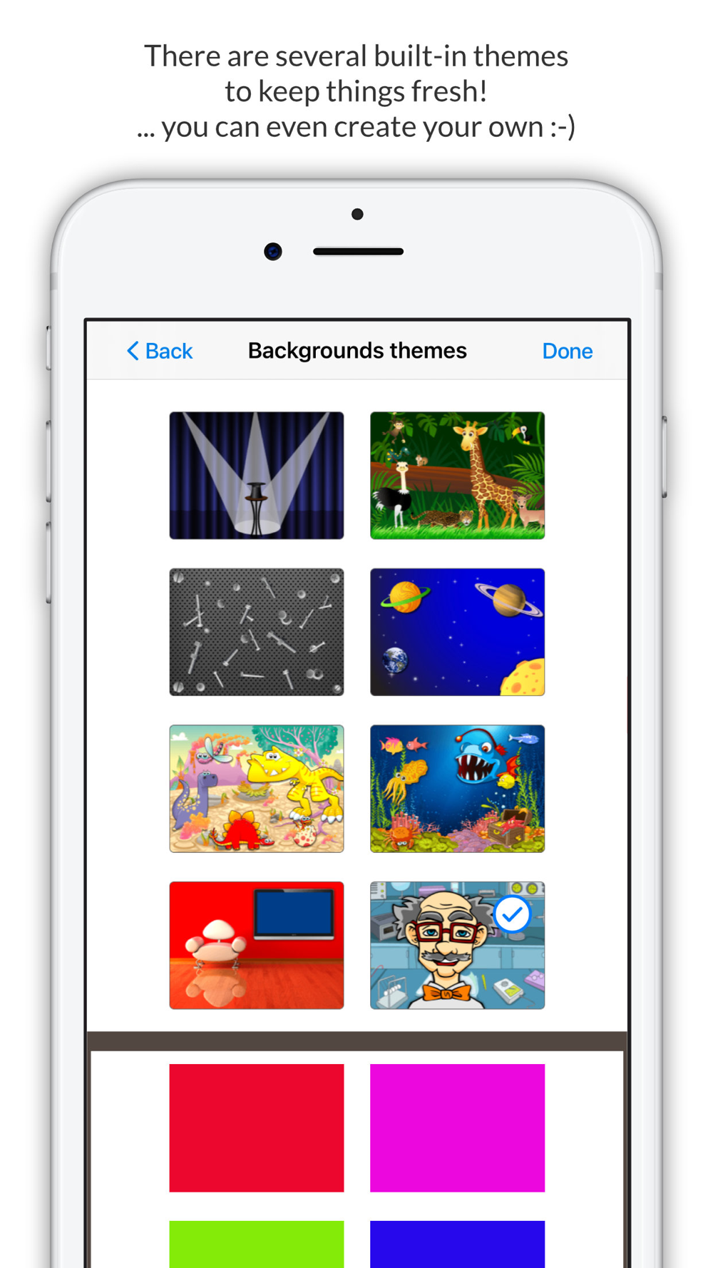 • The Animated Graphics and multiple themes make the whole experience a pleasure and keep things fresh for the students. You can even create your own backgrounds.