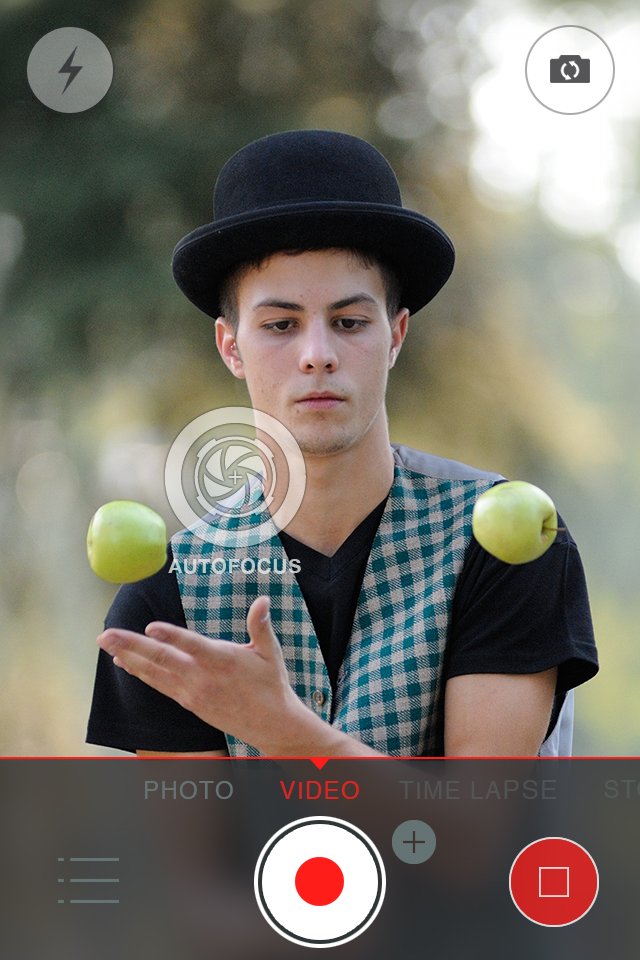 * Manually set image focus and exposure in each of the four modes (photo, video, stop motion and time lapse) by simply touching the screen with two fingers