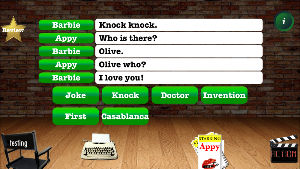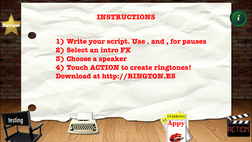 SKITKIT lets you create TALKING SKITS in multiple voices, including classic Siri (we call her Appy) using Text-To-Speech! Create custom audio and video SKITS for use in your own projects... even use them as talking ringtones! Select a unique voice for each line of text to be spoken, and create an entire conversational 'SKIT' with SKITKIT!