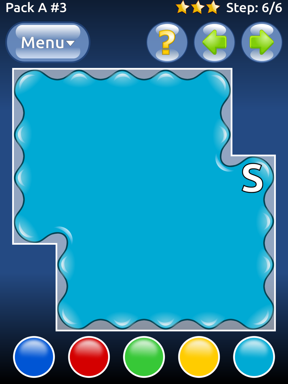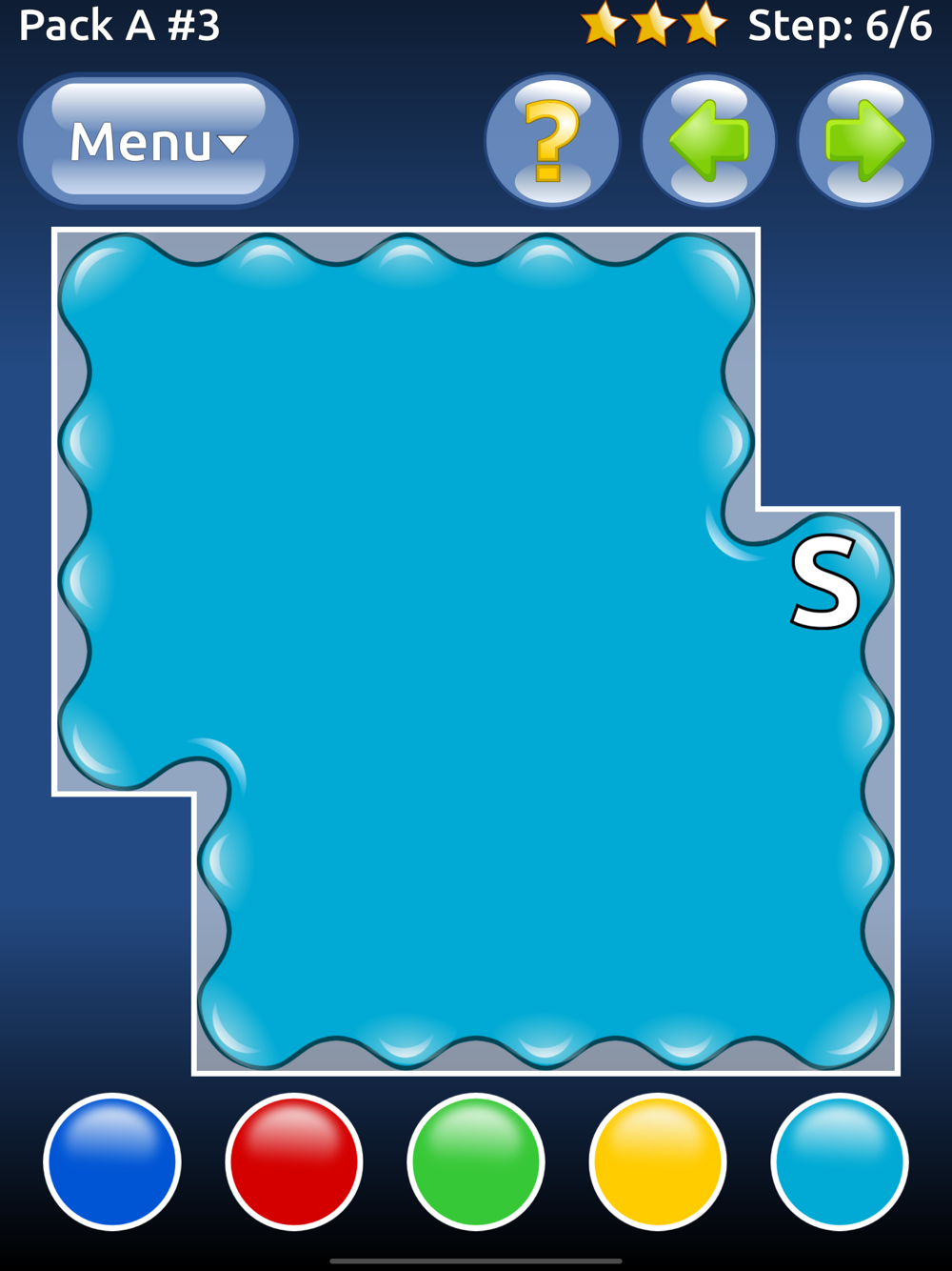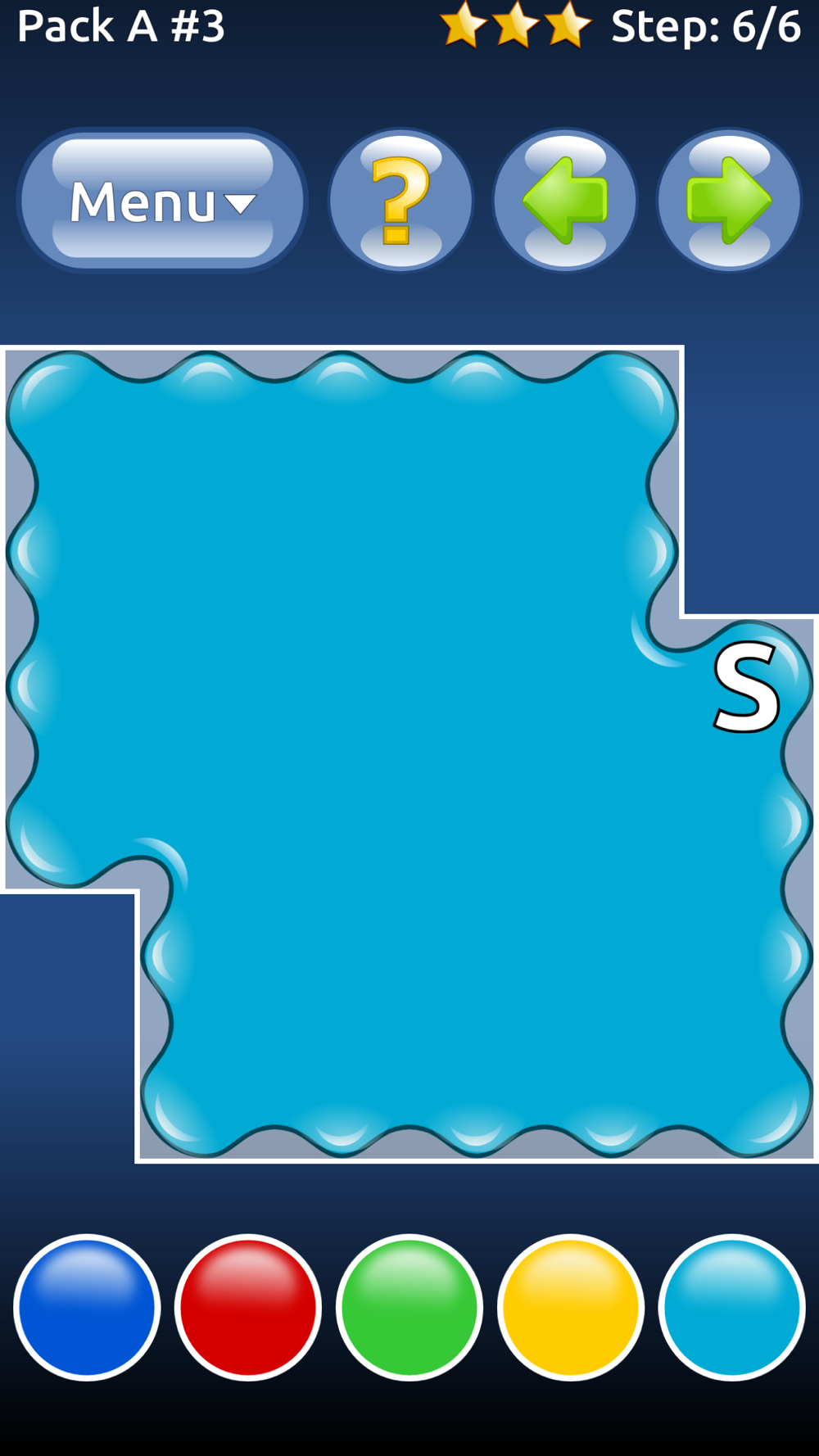 In Color Oil, your task is to fill the board with the same color. The game starts in the cell labeled S. Tap the buttons on the bottom to change the color of cell to match the surrounding cells. Do this repeatedly until all cells are of the same color.