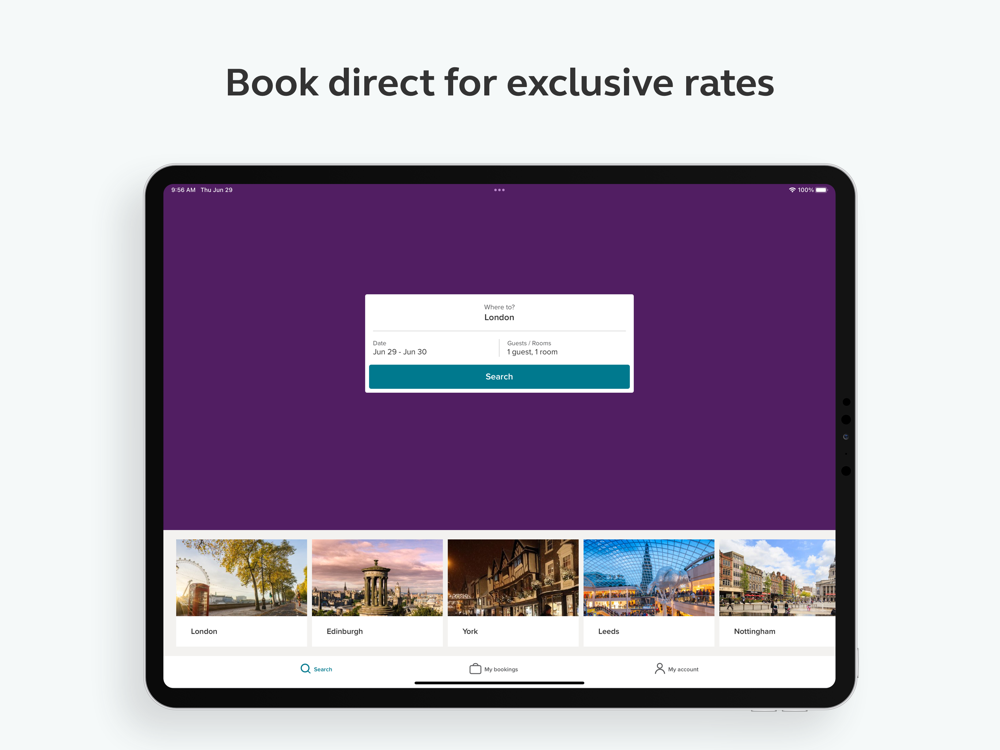 With over 800 hotels in great locations across the UK, Ireland and Germany, wherever you’re going you’ll find a Premier Inn close by. Whether you're staying for a fun family break or an all-important business trip, we have fantastic value rooms just a few taps away. The Premier Inn app is the fastest and easiest way to book your perfect hotel. Plus, booking direct via the app means you won’t find a cheaper rate anywhere else.