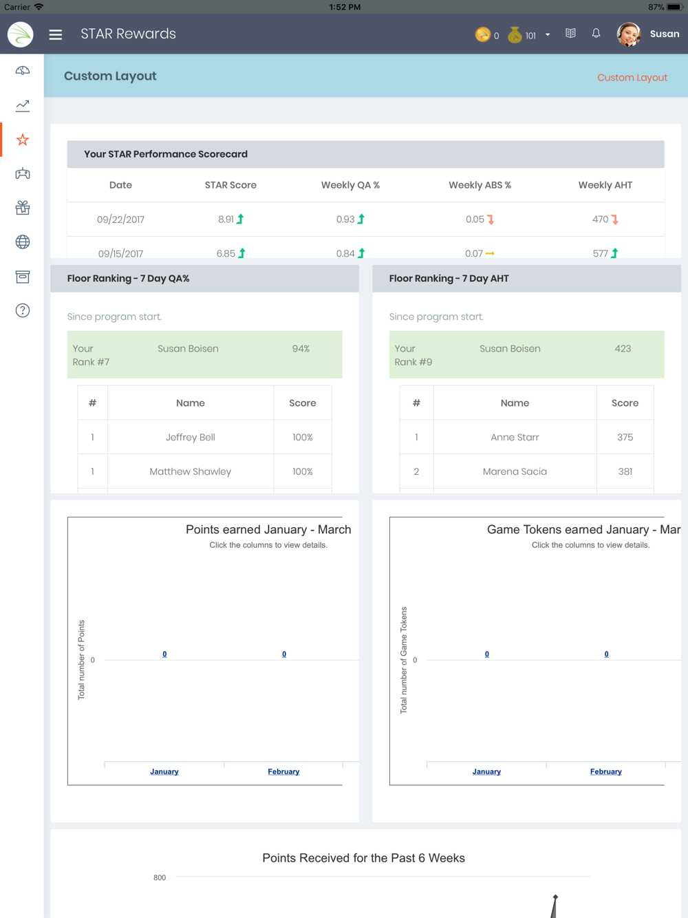 A mobile version of Snowfly's employee incentive and employee recognition management system