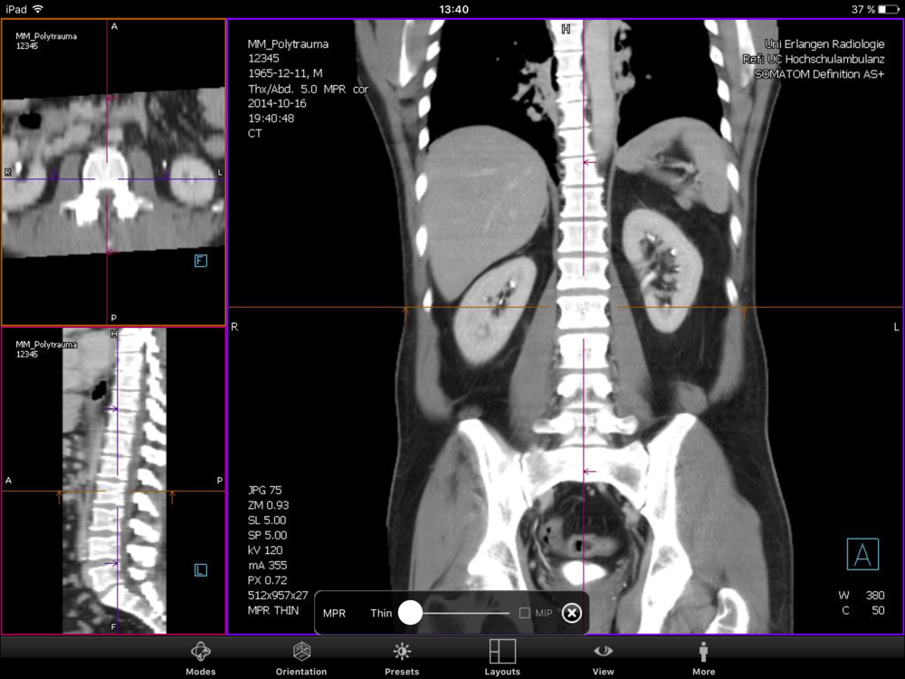 The syngo.via WebViewer provides a demonstration mode that allows you to try out the App using our demonstration servers. When you install the app for the first time and run it, it will ask if you want to connect to a demonstration server. The App then allows you to automatically find a demonstration server where you can view real clinical cases and try out the App.