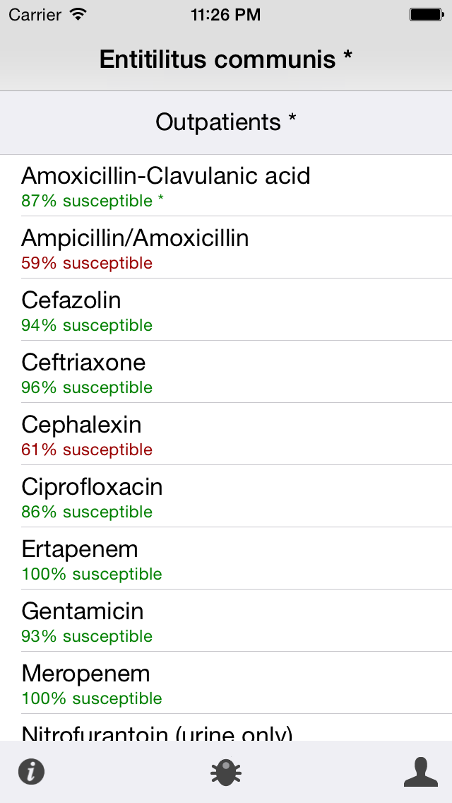 Antibiograms help healthcare professionals and clinical microbiologists choose the most effective antibiotics to empirically treat infections, based on local susceptibility patterns. Now this valuable information can be available to them on iPhone/iPad mobile devices.