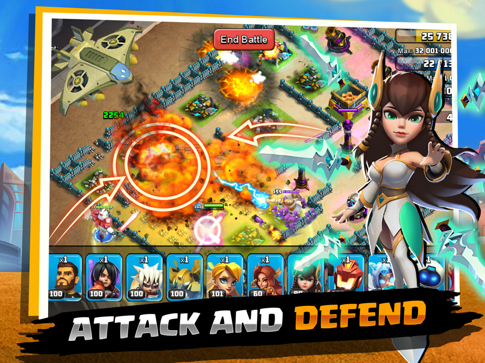 10+ different troop types and 10+ spell for you to choose from! Plan your lineups, take advantage of the counter system, and train your troops with the right Heroes! Perfect your strategy to defeat your enemies!