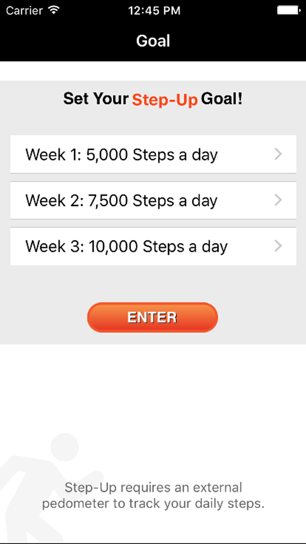 Step-Up requires an external pedometer to track your daily steps.