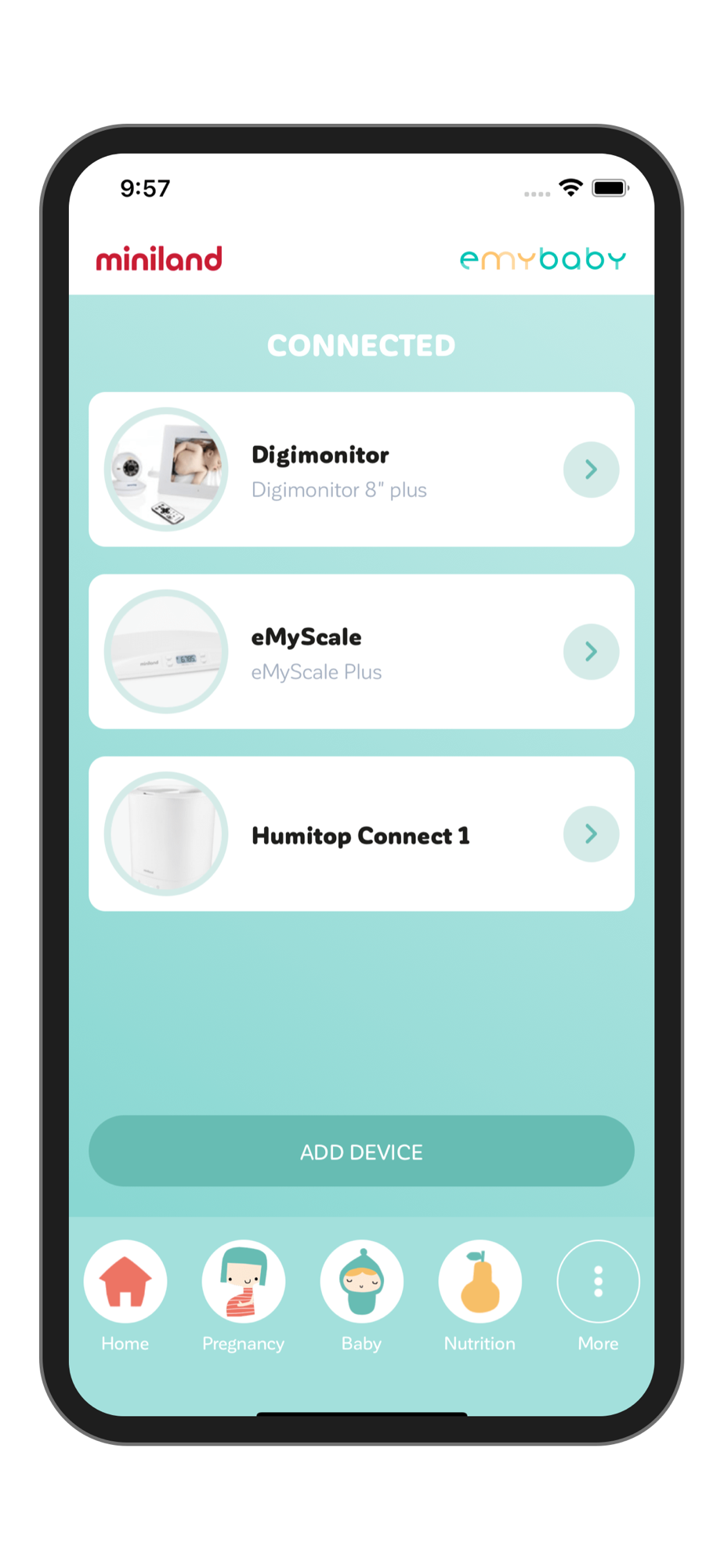 Miniland emybaby is a free app for babies and pregnancy, focused on the well-being of the baby and designed for families, winner of the MIA award for innovative product.