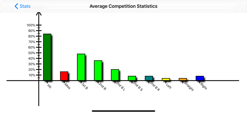 1) Competition and practice average statistics, hit, miss, left, right and straight miss targets.