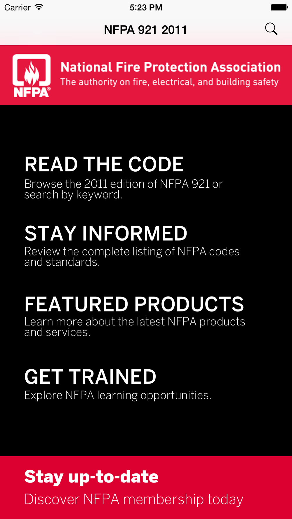 The NFPA 921 2011 app is your mobile companion to the code. Browse the chapters or search by keyword, and access important safety news and articles from the NFPA.