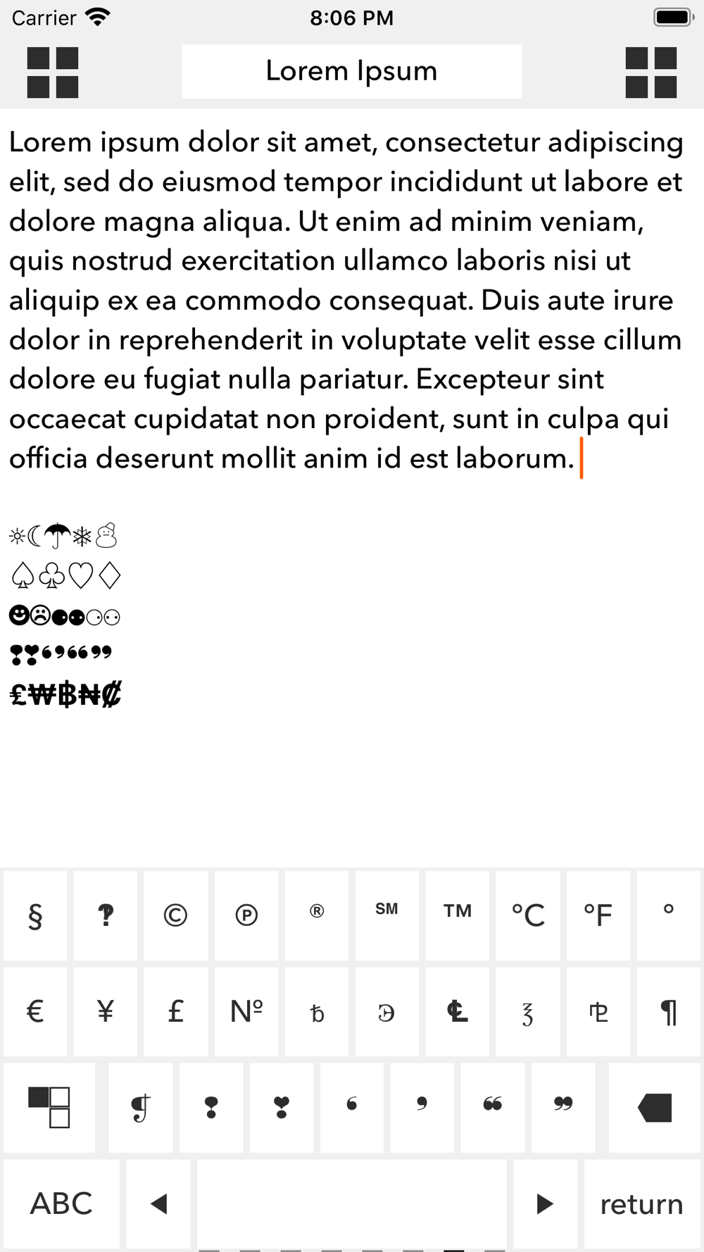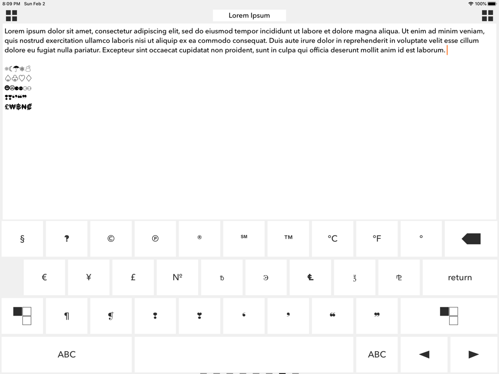 Character Writer is an elegant text editor and the best way to work with special characters on the iPad.