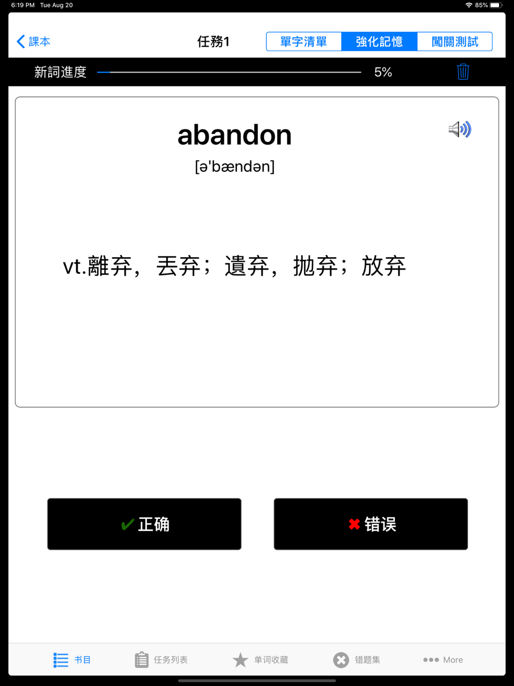 6、提供单词收藏以及测试错题库等功能, 简便易用实用!