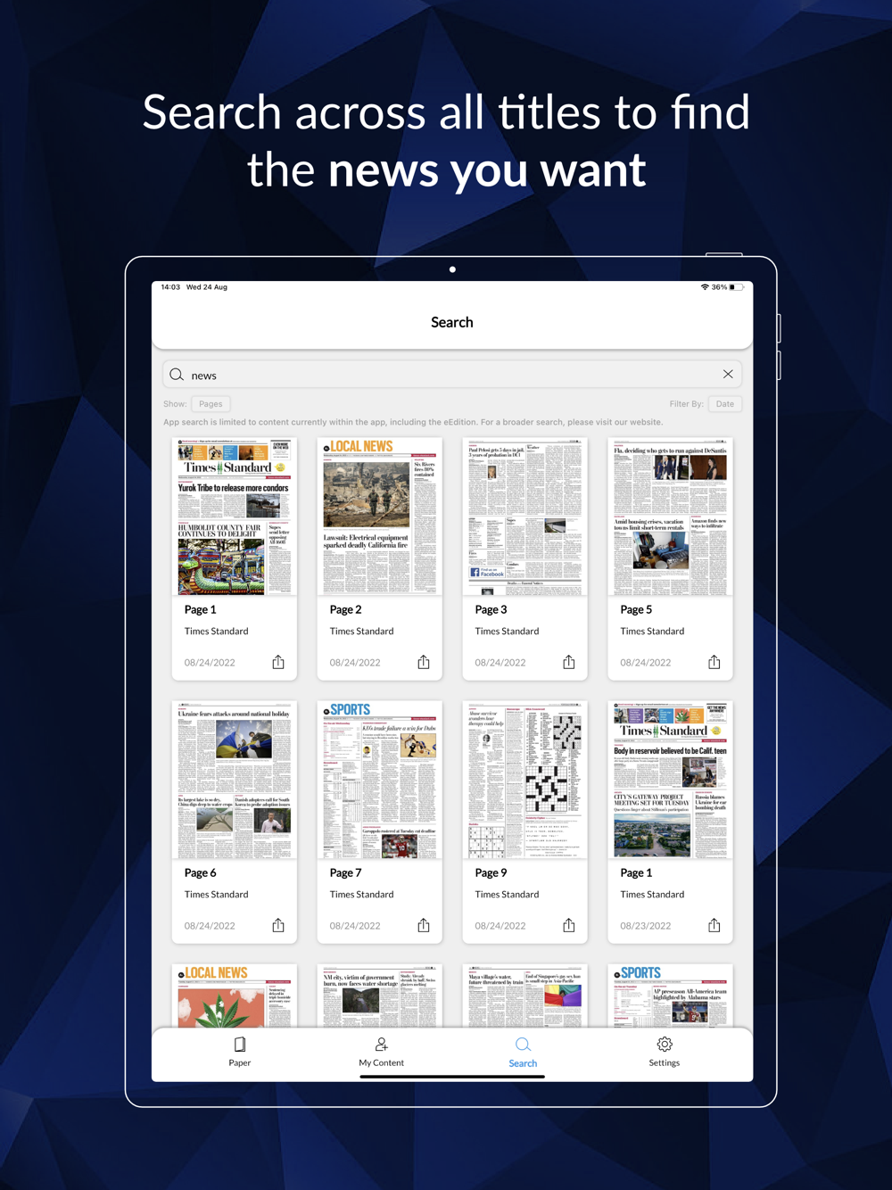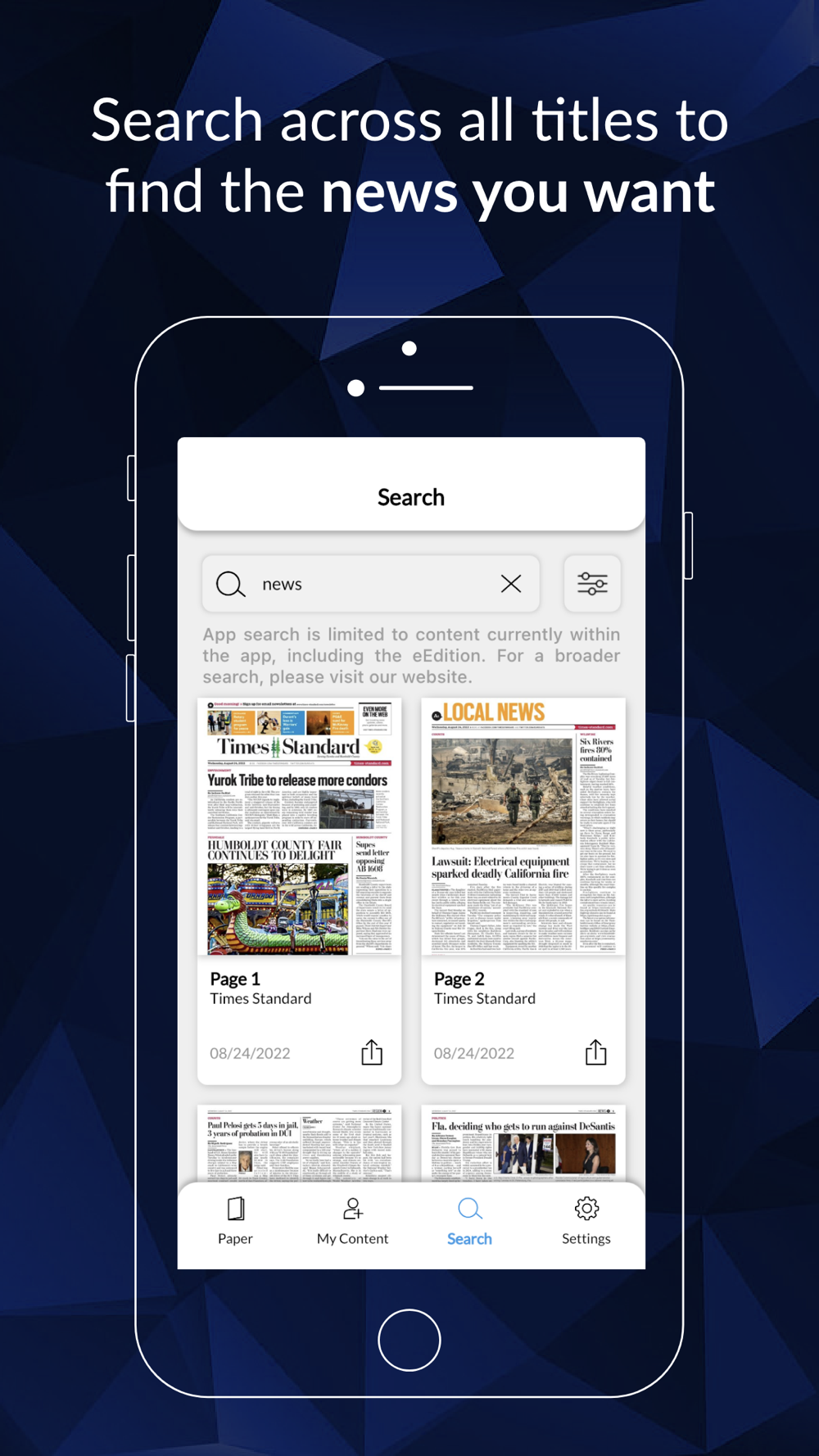 The Eureka Times-Standard presents the e-Edition, an exact digital replica of our print product. For users who prefer a more traditional feel and layout for their online news, the e-Edition features a sectional layout of the daily newspaper. The app is free to e-Edition readers.