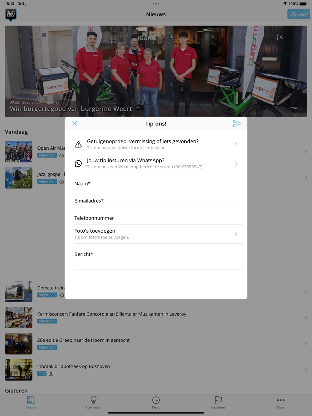 Via de app kun je snel een nieuwstip met foto's insturen.