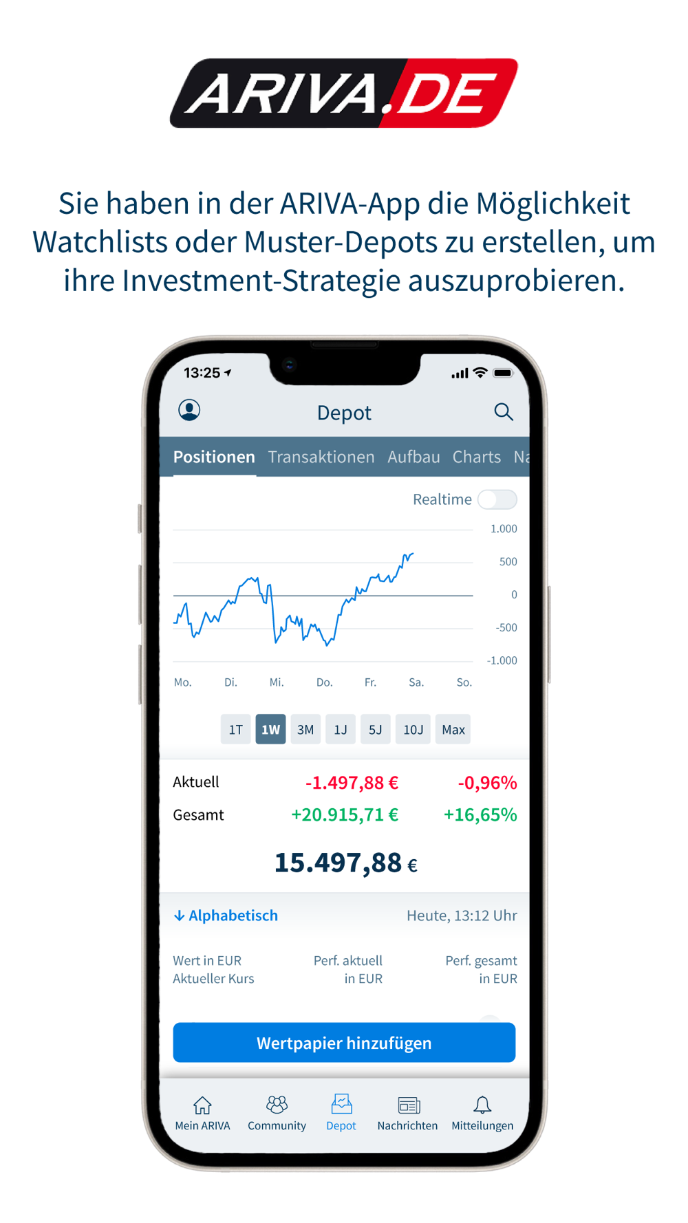 Zögern Sie nicht länger und bleiben Sie mit der ARIVA.DE Börsen-App auch unterwegs immer informiert über die aktuellen Geschehnisse und vor allem über alle Positionen in Ihrem Wertpapier-Depot!