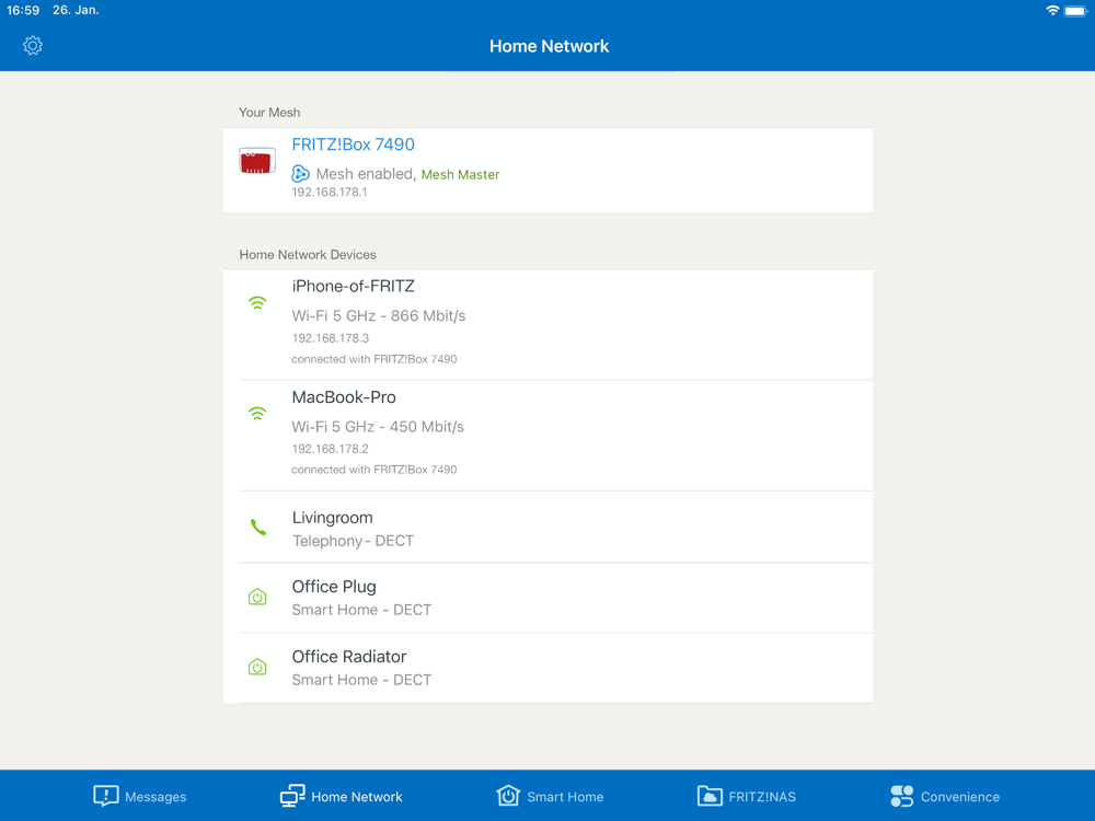 Prerequisite for full scope of functions of the MyFRITZ!App: FRITZ!Box with FRITZ!OS version 7.29 or higher.